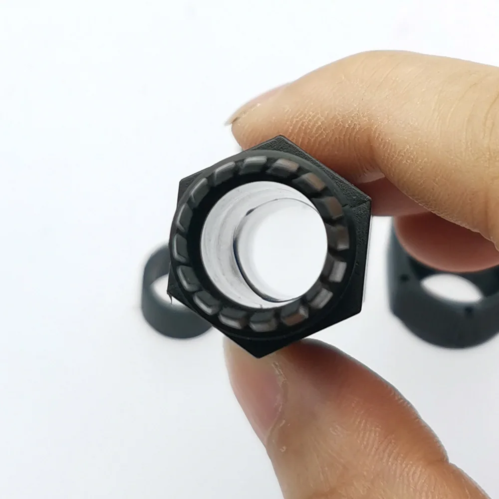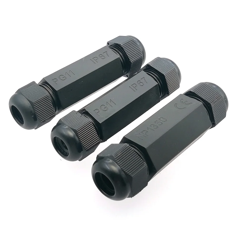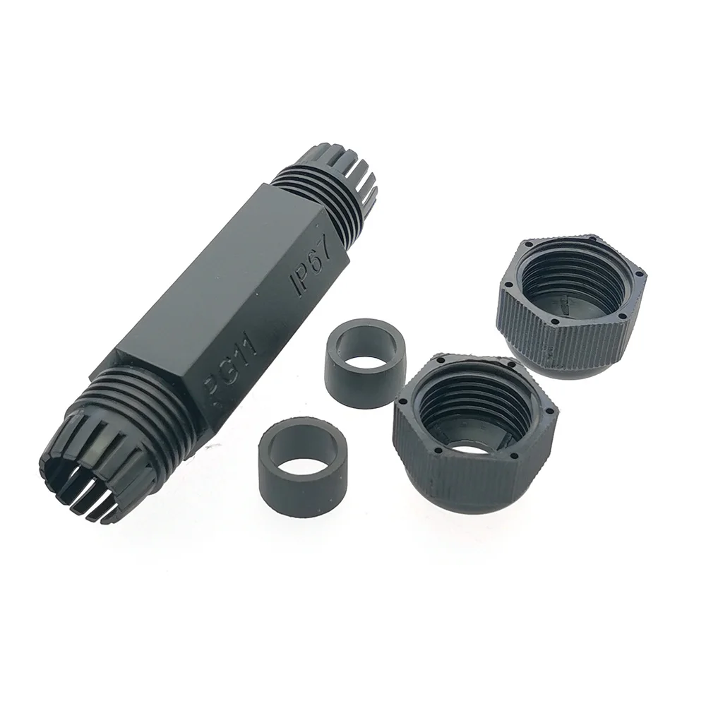 - Robust black hexagonal plastic body with embossed markings such as “PG11”, “IP67”, and “IP54” for durability and waterproof ratings.