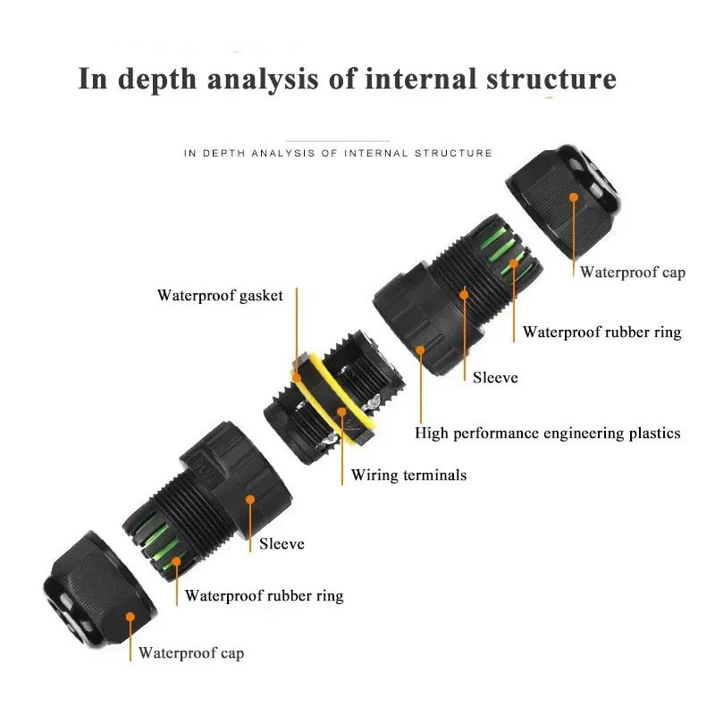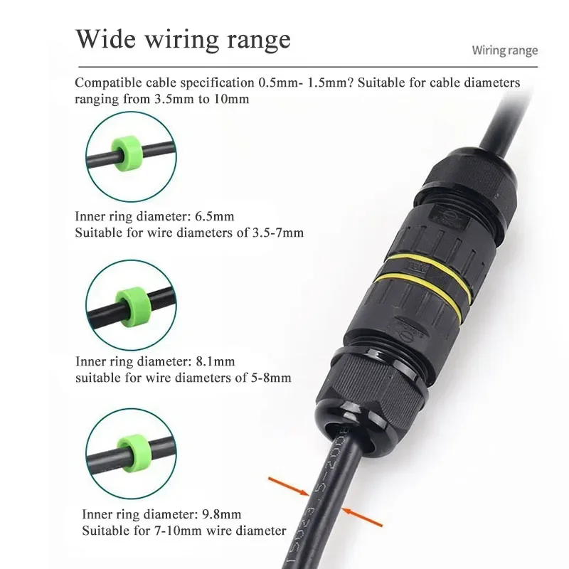 Invest in this high-quality waterproof cable connector for outdoor electrical installations. Its rugged design, superior sealing, and robust materials ensure long-term reliability. Imagine the ease of achieving a secure, waterproof connection in any weather. Whether you're upgrading existing lighting or installing new fixtures, this connector simplifies your work while providing peace of mind. Its versatile compatibility with 2-pin and 3-pin configurations means it adapts to various wiring needs. Don’t wait to enhance your outdoor projects with this dependable, durable connector—experience worry-free outdoor wiring now!