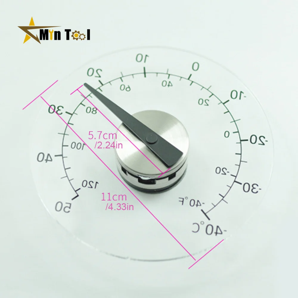 - High-definition, transparent 3mm acrylic dial with precise temperature scales printed directly for effortless readability in Celsius (-40°C to 50°C) and Fahrenheit (-40°F to 120°F).