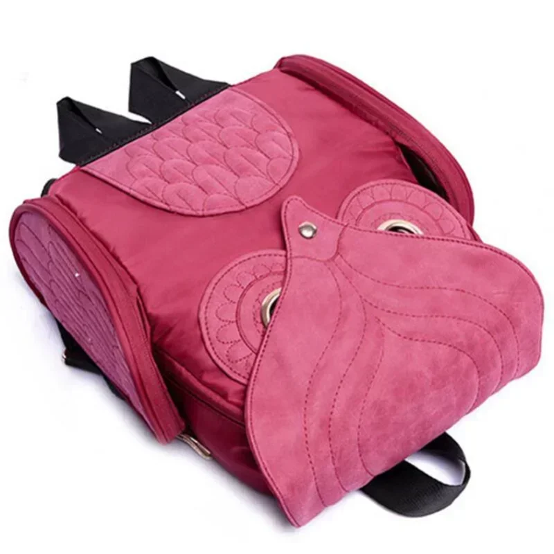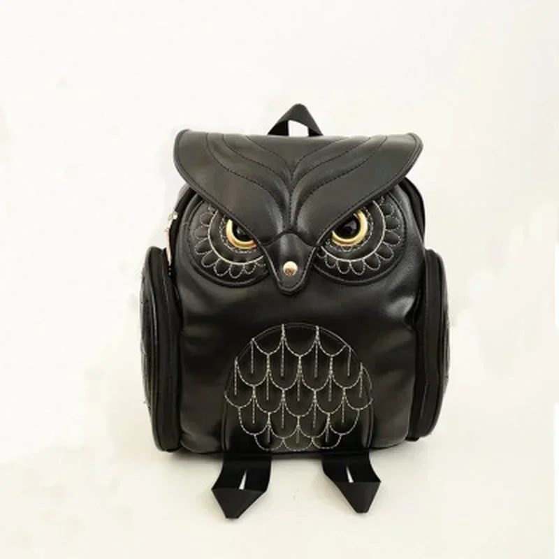 This owl-shaped shoulder backpack measures 23 x 29 x 11 cm, crafted from high-quality PU leather with a polyester lining. Featuring a zip closure with a flap top and an adjustable shoulder strap, it offers a practical capacity of under 20 liters for casual use. The bag showcases an adorable owl face design with detailed embroidery and decorative stitching, available in vibrant colors including pink, rose red, black, and gold. Its sleek exterior with a classic animal print pattern combines cute charm and stylish sophistication, making it a perfect accessory for everyday wear. Designed for women, it provides both functionality and playful fashion.