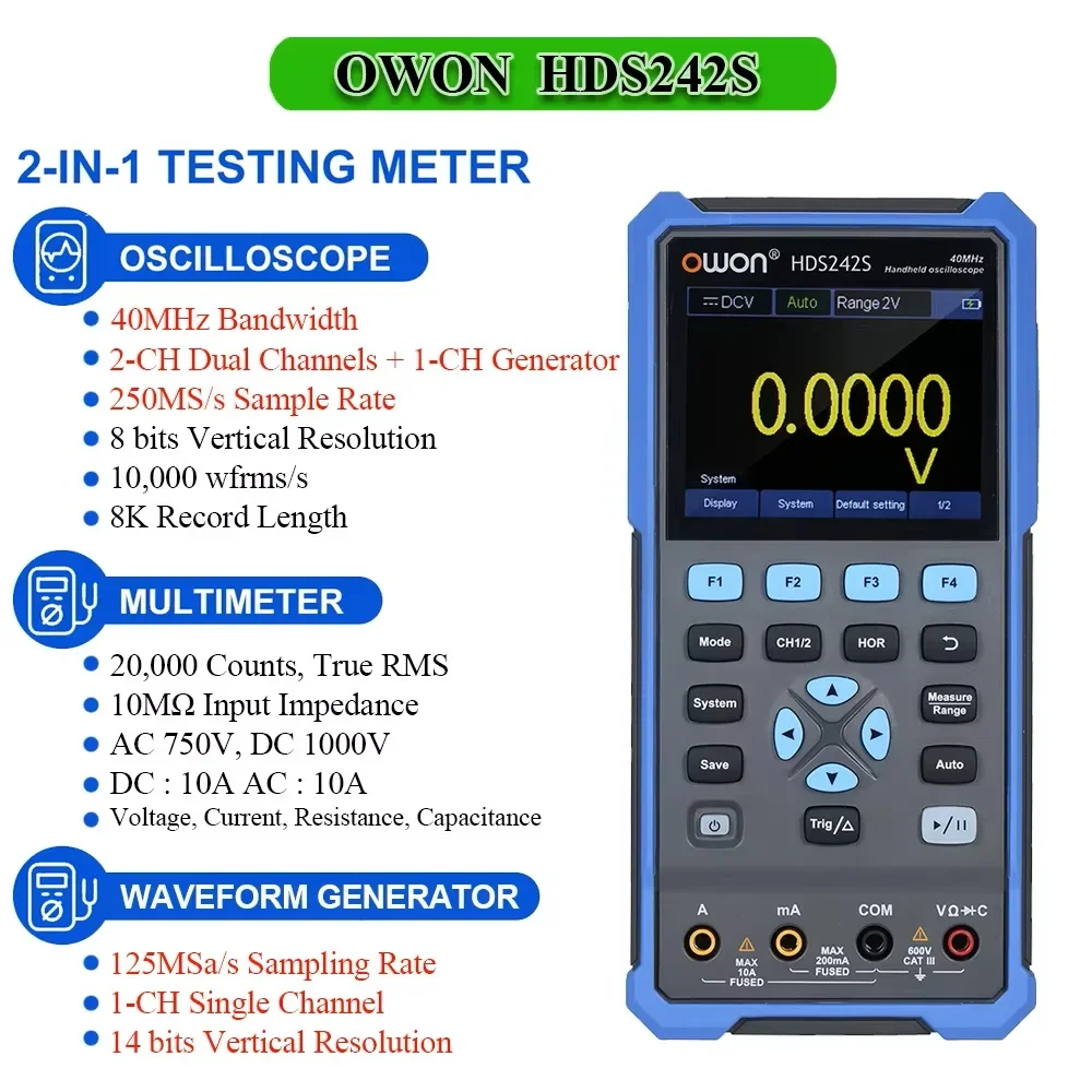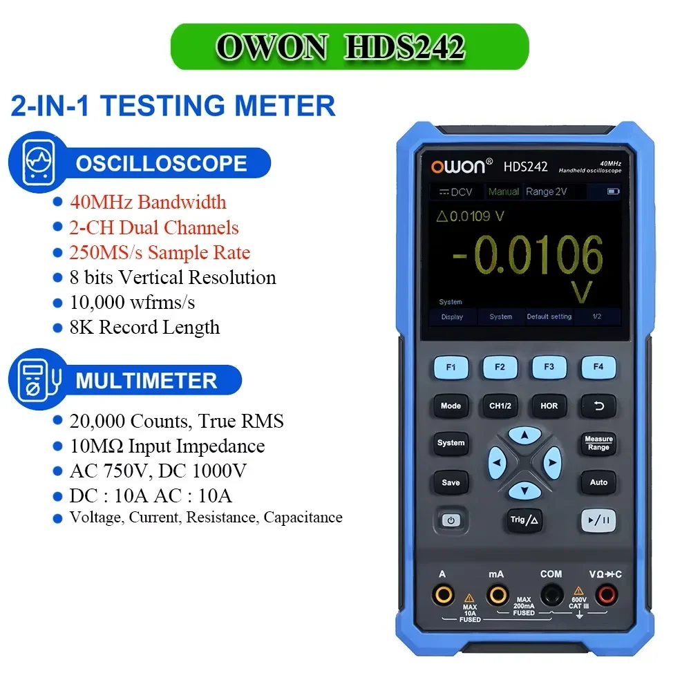 Don’t miss out on enhancing your technical toolkit with the OWON HDS242S handheld digital oscilloscope. Its combination of portability, user-friendly features, and impressive technical specifications ensures you’ll achieve optimum performance in your projects. Visualize your success as you start using this powerful tool for all your measurement needs. Experience the difference with the OWON HDS242S and take your precision work to the next level!
