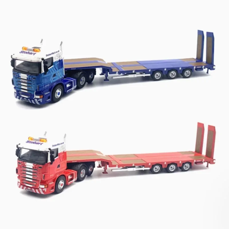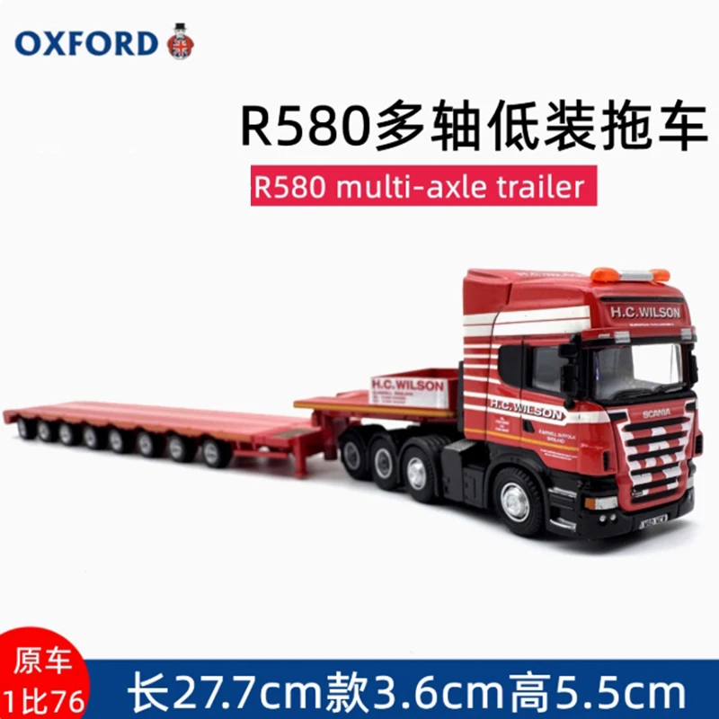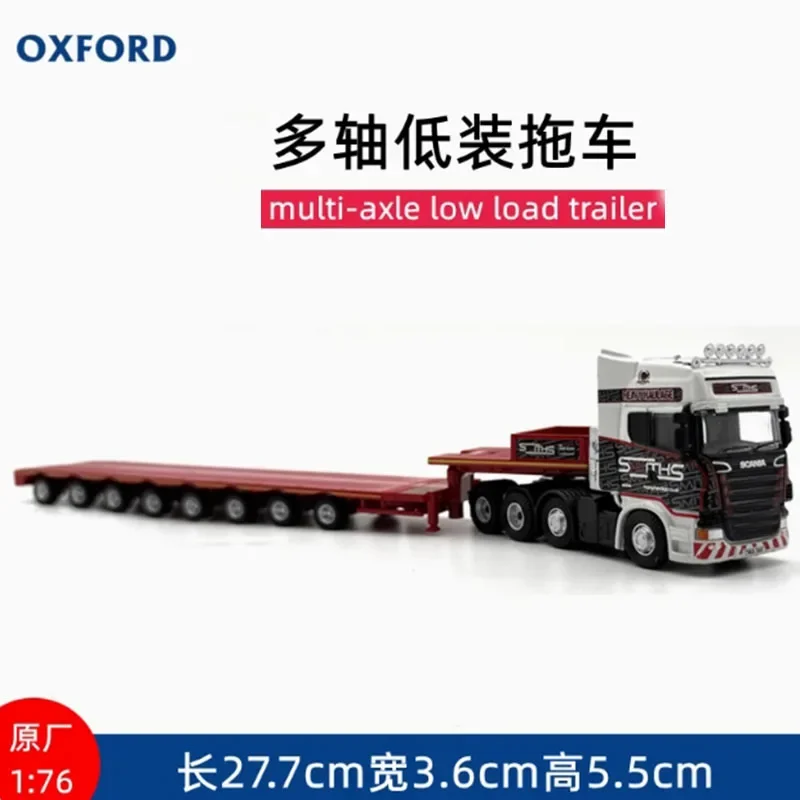 Experience the charm of detailed craftsmanship with this realistic 1/76 scale diecast model of the Oxford Alloy R420 semi low loader trailer. Crafted from alloy and plastic, this model perfectly captures the industrial aesthetic of real-world heavy-duty trailers. Its vibrant colors, including striking shades of blue, orange, and red, add visual appeal to any collection or display setup. The sleek, flatbed design features intricate details such as multi-axle wheel setups, realistic tires, vertical supports, and chassis details like antennas and vents. With a polished finish, it exudes high-quality craftsmanship and attention to detail. Measuring approximately 27.7 cm long, this static model is a perfect decorative piece for enthusiasts and collectors seeking authenticity and style in their displays.
