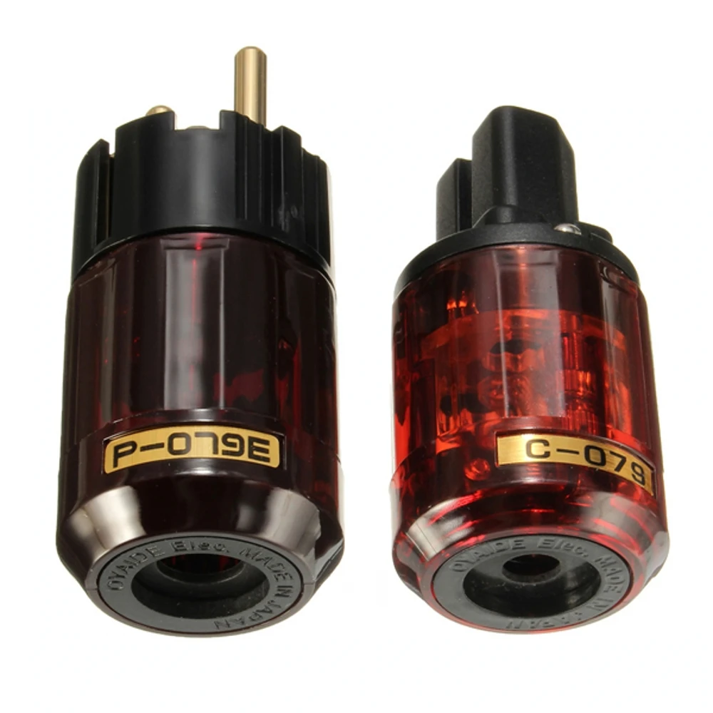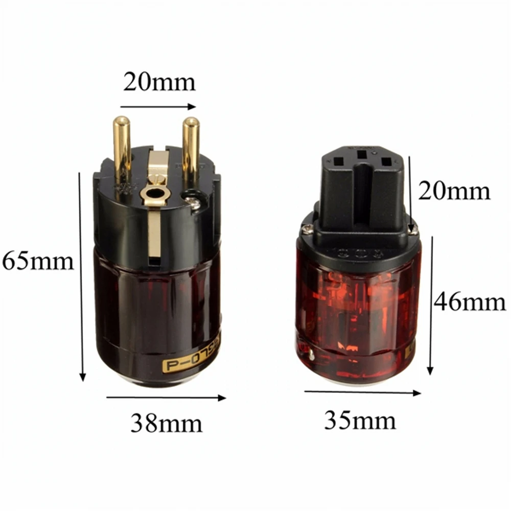 Experience the unmatched quality of this Oyaide C-079 and P-079e Schuko EU power plug pair. Designed for high-fidelity audio applications, these connectors feature a sleek black plastic body with a matte finish. The 24K gold-plated contacts ensure superior conductivity, while the transparent red housings showcase their premium construction. With a voltage rating of 10A/250V and 15A/125V, you can trust their reliable performance. Their compact dimensions of 48mm body length and 38mm diameter make them an excellent addition to your audio setup. Picture yourself elevating your sound experience with these exceptional connectors in your collection.