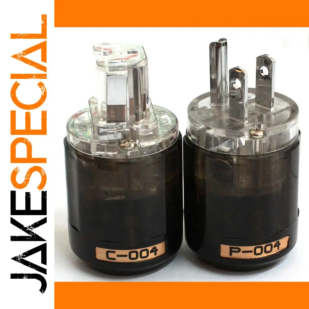 - This pair includes a rhodium-plated IEC female connector (C-004) rated at 10A/250V, featuring transparent polycarbonate shell revealing internal gold/rhodium contacts for optimal conductivity.