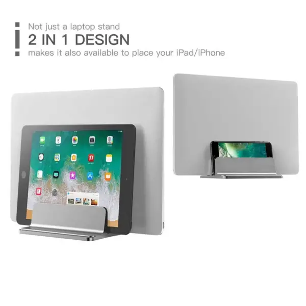 Imagine organizing your workspace with this sleek and versatile double vertical laptop stand. Designed for MacBook Air and Pro, it elevates your device, freeing up desk space and keeping your work area neat. Crafted from durable aluminum alloy, this stand offers a sturdy support while maintaining a lightweight profile. Its adjustable design fits laptops up to 17.3 inches, ensuring compatibility with various models. Whether you’re working from home or in the office, this stand provides a comfortable viewing angle and promotes good posture. Easy to install with included tools, it’s the perfect accessory to enhance your productivity. Experience a clutter-free workspace and a more comfortable computing experience today.