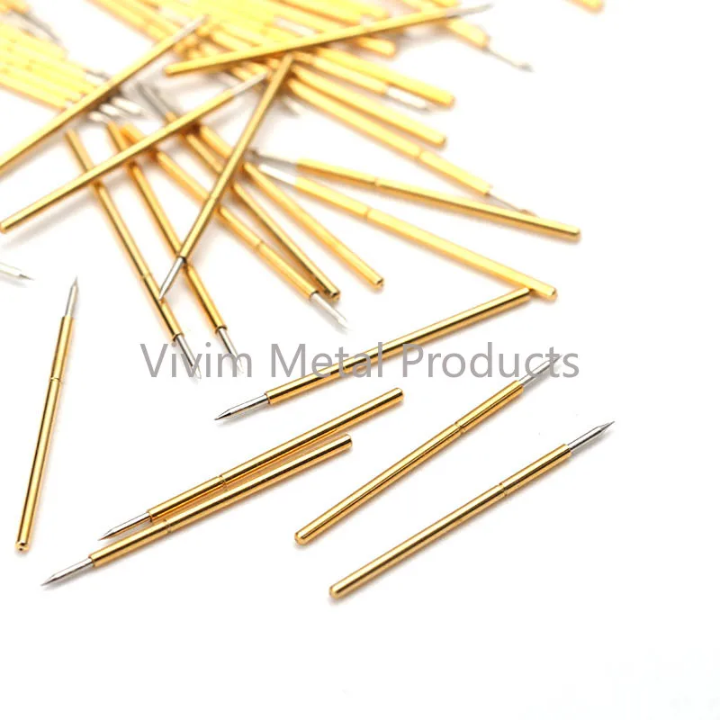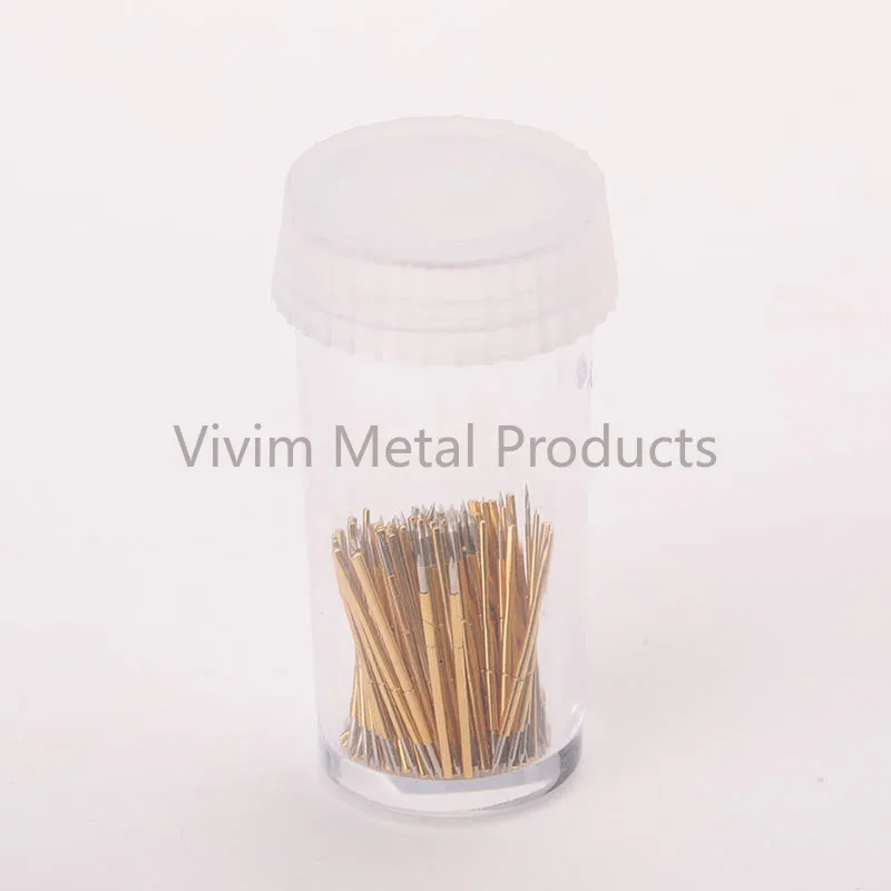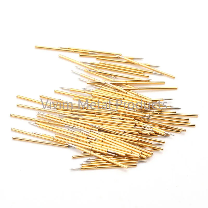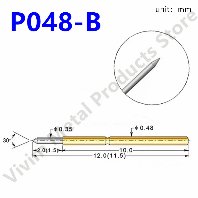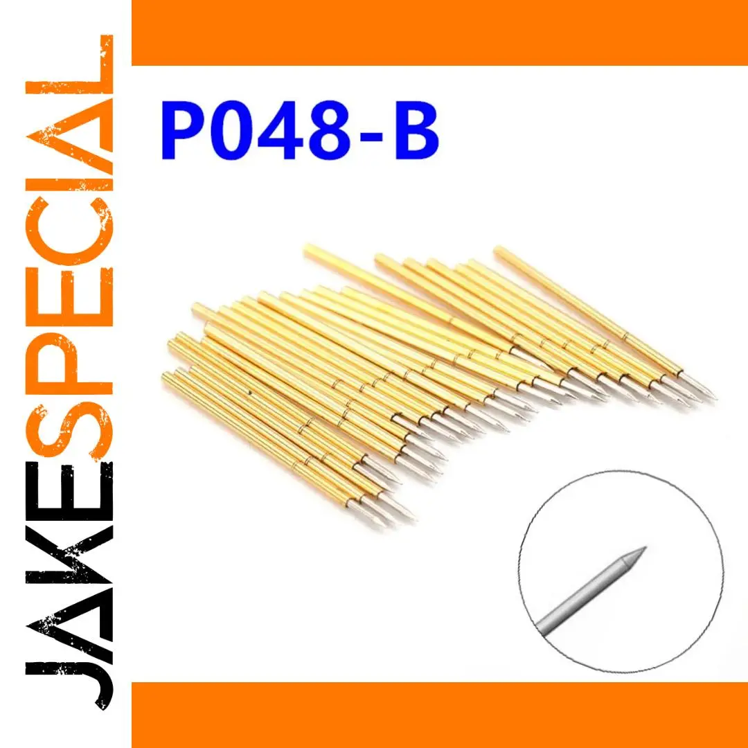 Experience precise circuit board testing with these high-quality P048-B and P048-B1 spring test probes, available in packs of 20 or 100. Crafted from durable phosphor brass with a bright gold finish, each probe features a sleek, smooth body with a 0.48mm diameter sleeve and a 0.35mm pointed needle tip, measuring approximately 11.5mm to 12mm in total length. Designed for reliable electrical contact under compression loads, these probes are ideal for detailed testing applications. Their professional, polished appearance showcases excellent craftsmanship, combining functionality with a refined aesthetic to ensure accurate, safe, and durable testing performance.