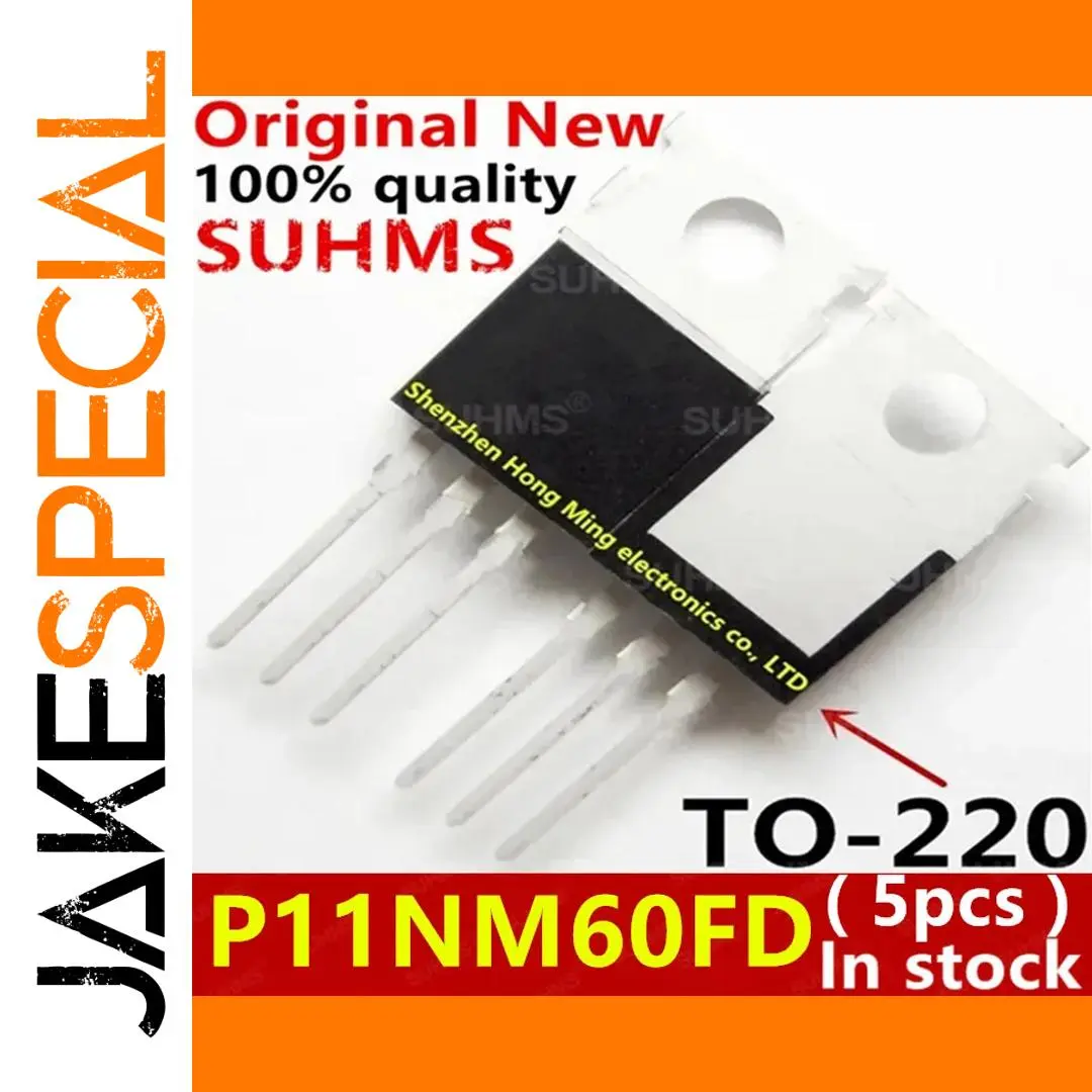 Upgrade your hardware with this set of five new P11NM60FD/STP11NM60FD drive ICs in TO-220 package, designed for optimal performance in computer applications. Featuring a sleek black rectangular casing with a flat top surface and a subtle circular mounting hole, these ICs have seven shiny metallic pins for reliable connectivity. They operate within standard supply voltages, dissipate power efficiently, and are suitable for a wide range of electronic projects. The durable, matte finish showcases a modern industrial aesthetic, ensuring a seamless blend of functionality and style. Trust in these genuine drive ICs for your essential computing modifications and repairs.