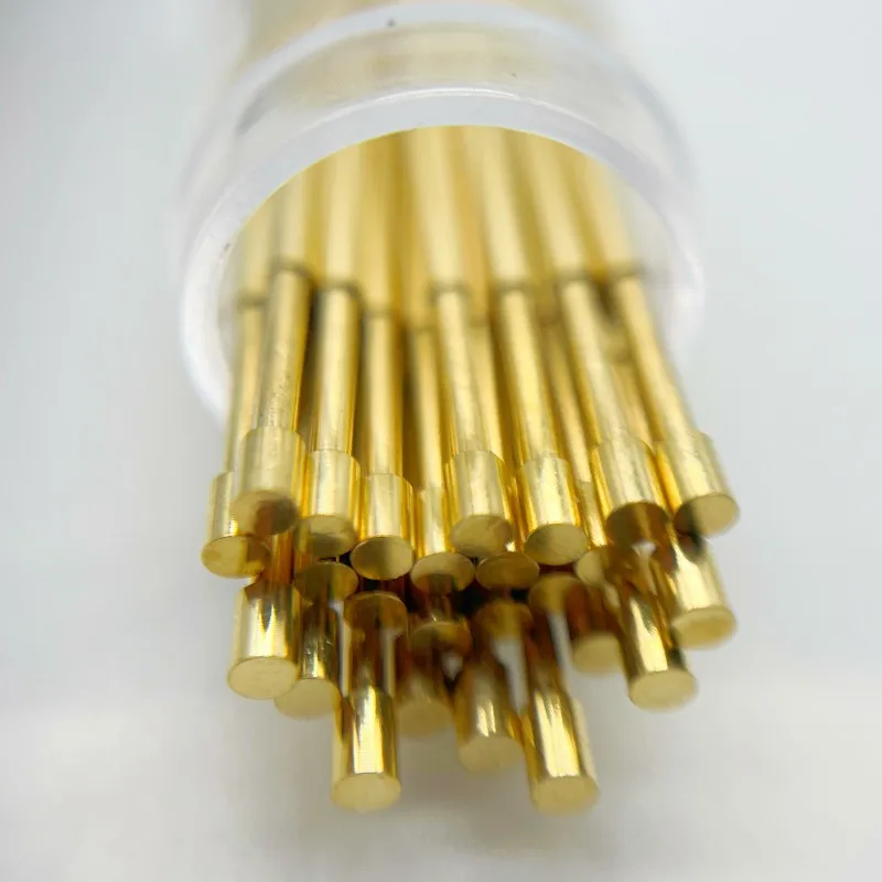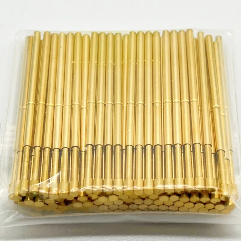 Experience the precision and reliability of this this PA100-G2 spring test probes set. Designed for electrical testing, these gold-tip pogo pins are crafted with high-quality materials to ensure consistent and accurate contact. The slender, elongated design, measuring 33.35mm in length with a 1.36mm needle diameter, provides ease of use and exceptional contact stability. The slightly thicker, 1.50mm diameter section near the tips enhances connection reliability. Available in sets of 20 or 100 pcs, they cater to various testing needs. The sleek gold finish not only adds a professional look but also resists oxidation, maintaining excellent performance over time. Ideal for circuit board testing, fixture setup, or device diagnostics, these probes are a reliable choice for demanding electronic applications.