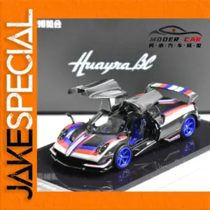 Experience the thrill of owning a highly detailed 1:64 scale diecast replica of the Pagani Huayra, crafted from durable metal with a sleek black aerodynamic body highlighted by vibrant red, white, and blue racing stripes. The model features realistic rounded headlights, intricate vents, and gullwing doors with textured carbon fiber-like finishes. Bright blue multi-spoke wheels with detailed high-performance tires complete this sporty, modern design, perfect for enthusiasts and collectors who appreciate precision craftsmanship. Designed for ages 14 and above, this non-electric collectible captures the dynamic spirit of the famous hypercar, making it an impressive display piece to showcase your passion for luxury automotive excellence.