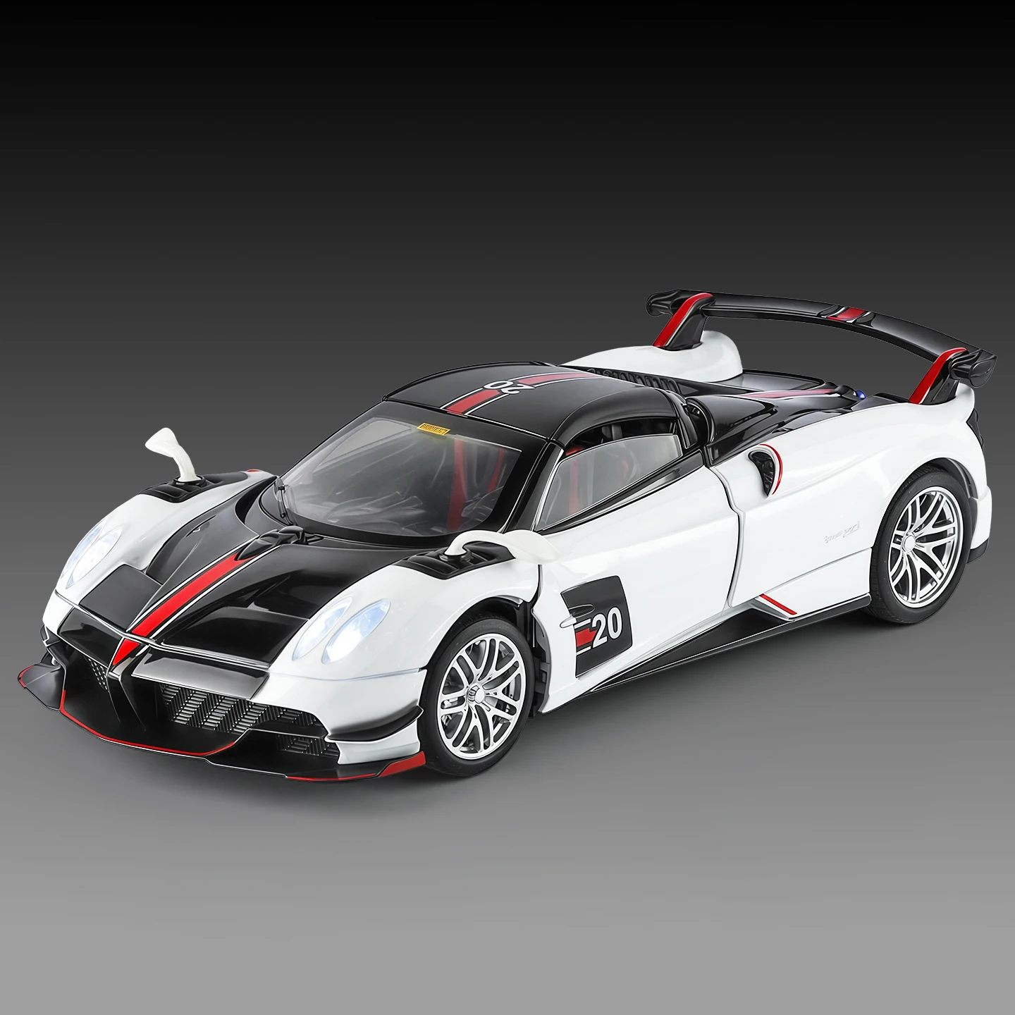 - Constructed from durable metal with crisp paintwork, showcasing realistic features such as aerodynamic lines, oval headlights, and a rear wing for an authentic look.