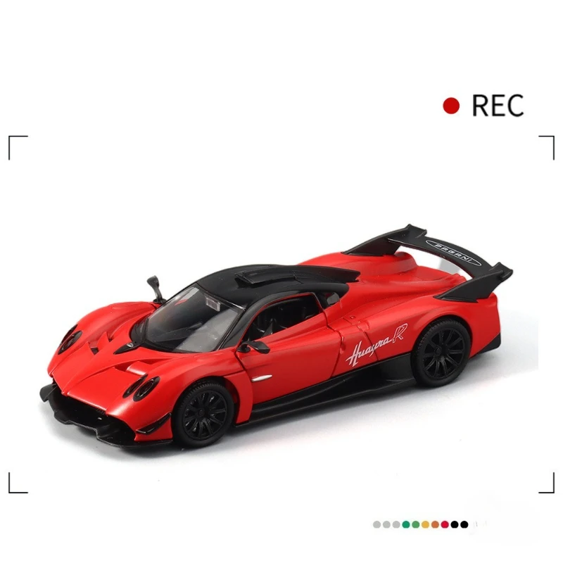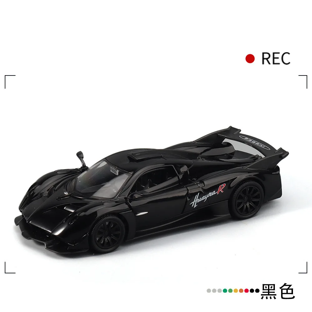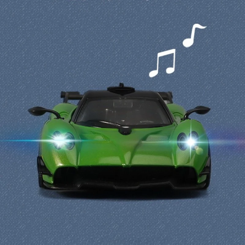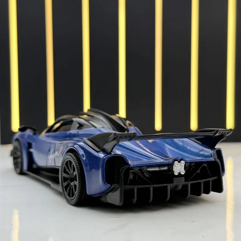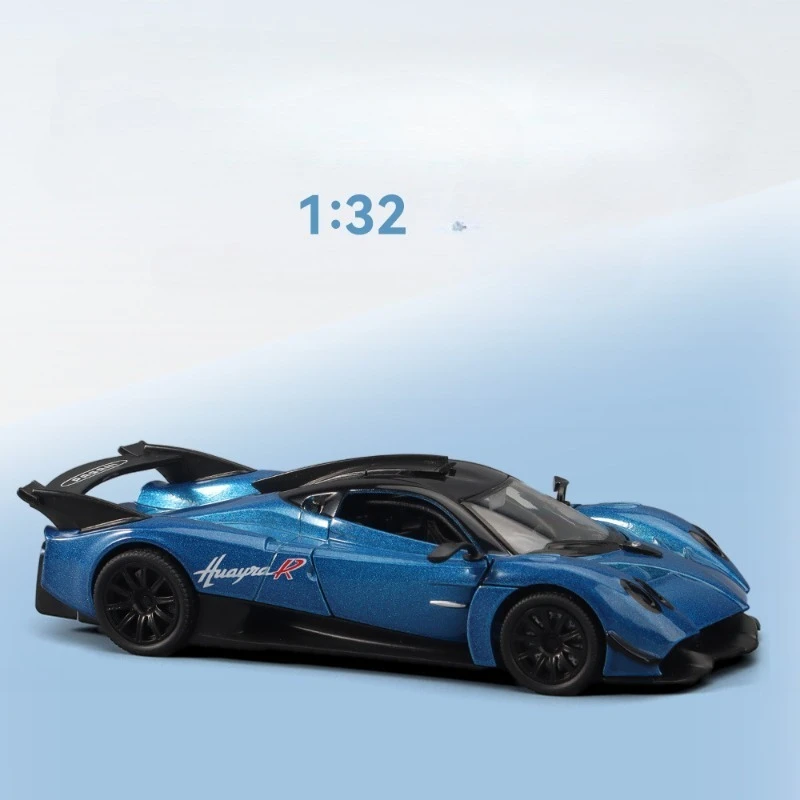 Experience the stunning craftsmanship of the 1/32 scale diecast model of the Pagani Huayra R Super Sport Car, featuring a vibrant blue glossy finish that highlights its sleek aerodynamic design. This collectible model boasts detailed front headlights, a large front grille, and sporty black alloy wheels with a multi-spoke design. With sound and light functions, it brings excitement to any collection. Constructed from high-quality metal, the model operates on a lithium battery (not included) and is suitable for voltage ranges of 100-240V. Enjoy this iconic supercar, also available in green, black, and red, making it a perfect addition for enthusiasts.