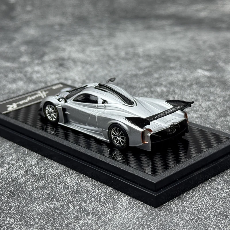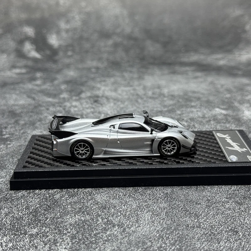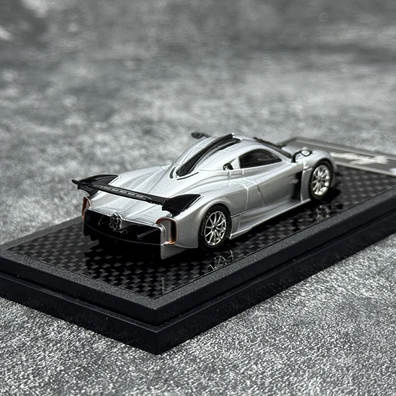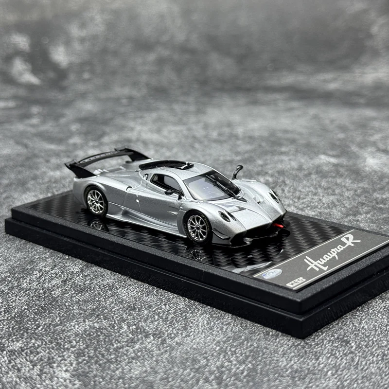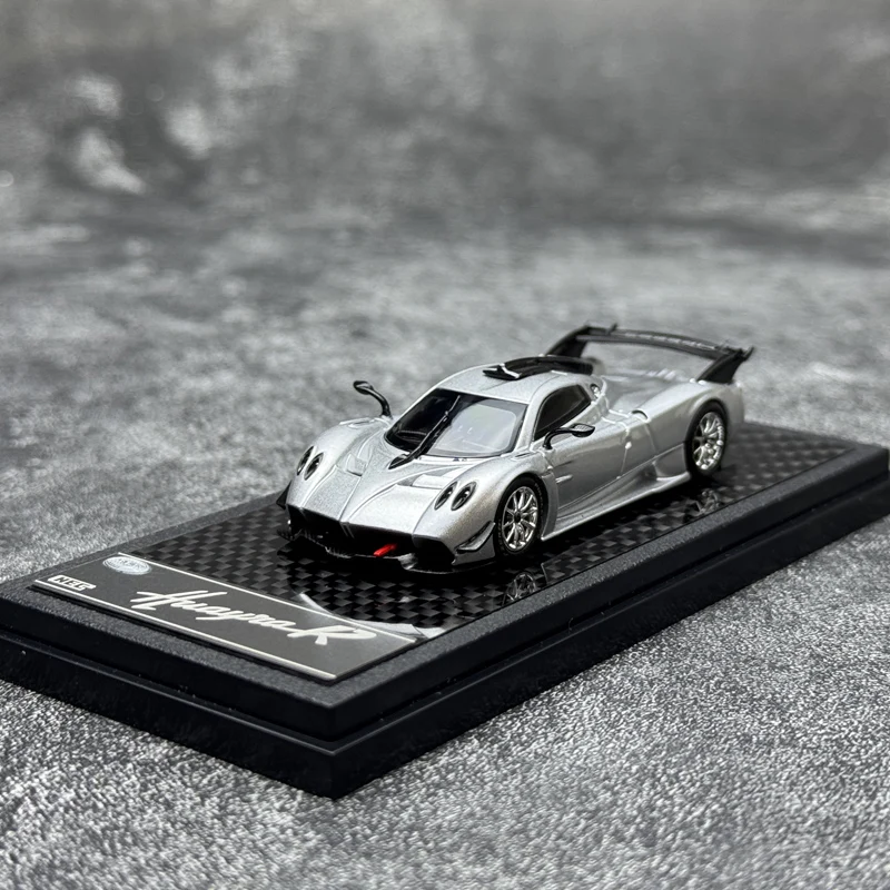 Experience the precision of this 1:64 scale diecast alloy model of the Pagani Huayra R supercar, crafted from metal and ABS plastic with a sleek, shiny silver finish (color code ’01’). Measuring approximately the size of the real vehicle, this static collectible features intricate details including a low, aerodynamic body with a front splitter, side air intakes, and a rear wing spoiler, perfect for display. The detailed rims and transparent windows reveal an interior crafted with care, emphasizing luxury and high-performance design. Designed exclusively for adult collectors, it offers a premium, non-electric, non-toy presentation that exudes sophistication and automotive elegance.