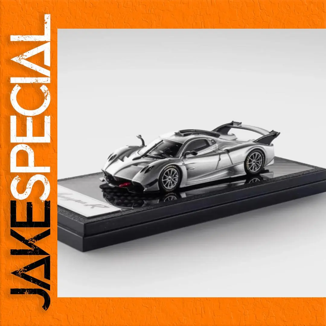 This 1:64 scale diecast model of the Pagani Huayra R showcases a stunning high-gloss metallic silver finish, accentuating its sleek and aerodynamic design. Crafted from durable metal, it features intricate details such as a meticulously designed front grille, prominent air intakes, and realistic headlights. The dynamic multi-spoke wheels contrast beautifully with black tires, while a striking rear wing enhances its sporty appeal. Displayed on a glossy black base, this model is perfect for collectors and enthusiasts who appreciate high craftsmanship and iconic automotive design. Elevate your collection with this exquisite Pagani Huayra R replica.