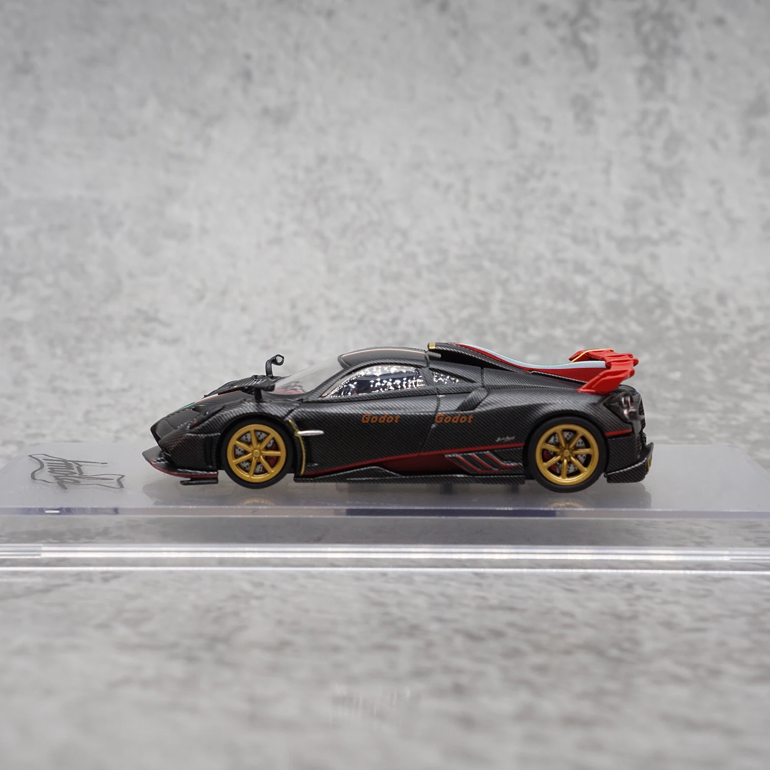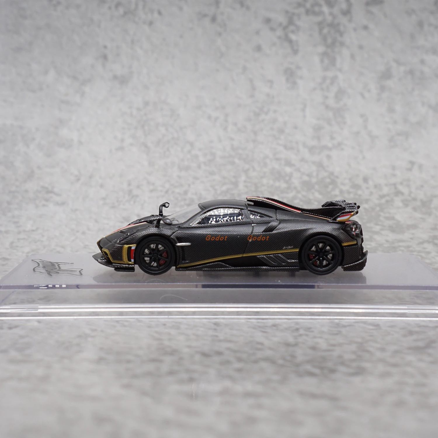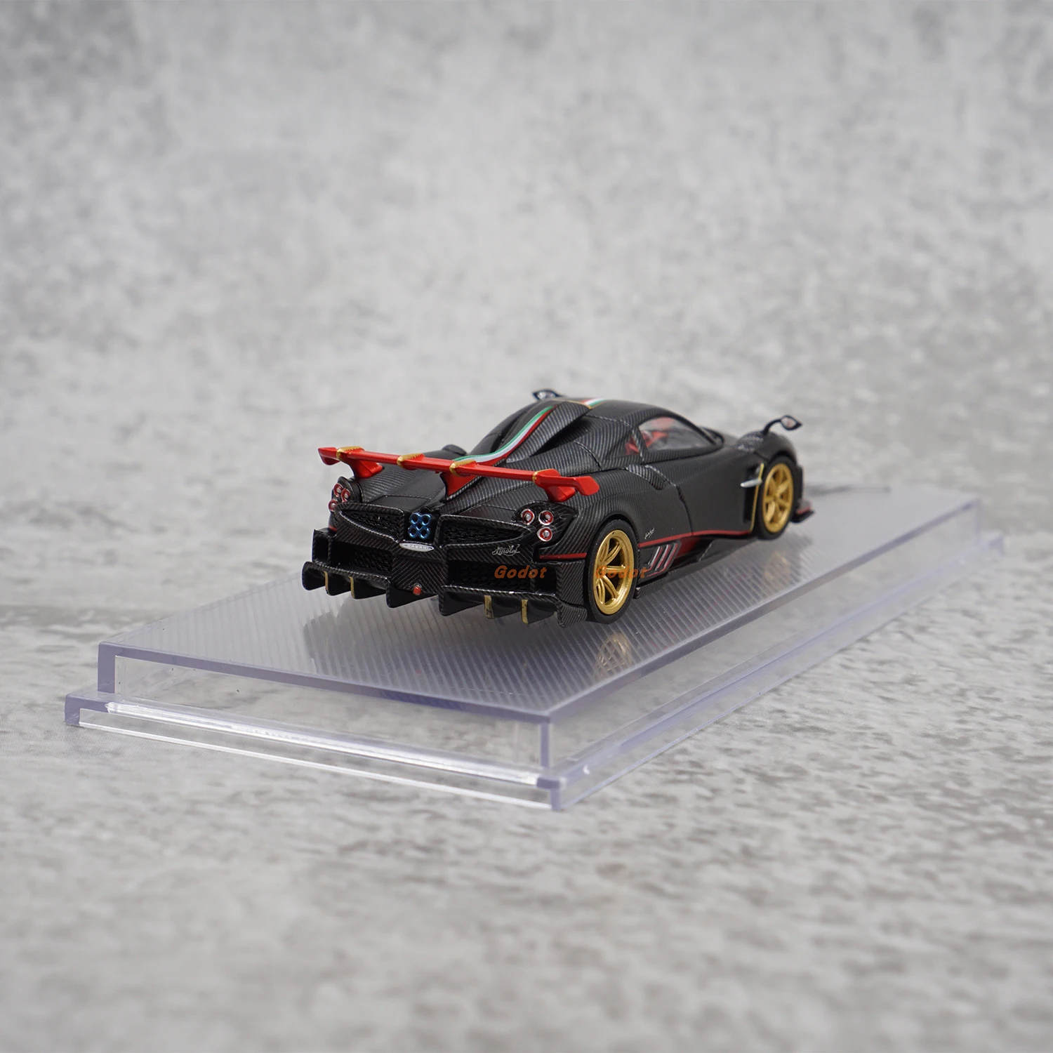 Experience the thrill of owning a miniature masterpiece with this meticulously crafted Pagani Imola 1:64 scale diecast alloy model. Crafted from durable alloy and ABS plastic, it boasts an authentic, sleek matte black finish accented with a subtle carbon-fiber pattern that exudes high-performance finesse. The model captures the aerodynamic contours of the real supercar, including smooth flowing lines, prominent wheel arches, and detailed features like transparent windows revealing a refined interior. The eye-catching bright red rear wing, paired with vibrant green, white, and red racing stripes running along the roof and hood, pays homage to Italian racing heritage. Perfect for collectors, this static display piece allows you to admire its fine craftsmanship and stunning details whenever you wish.