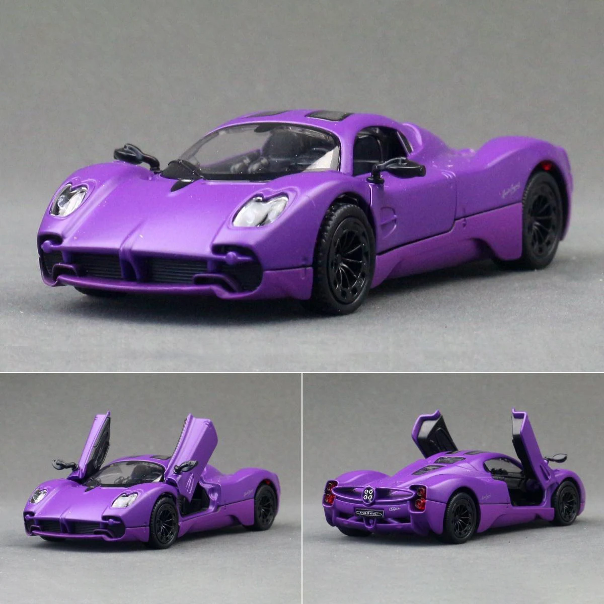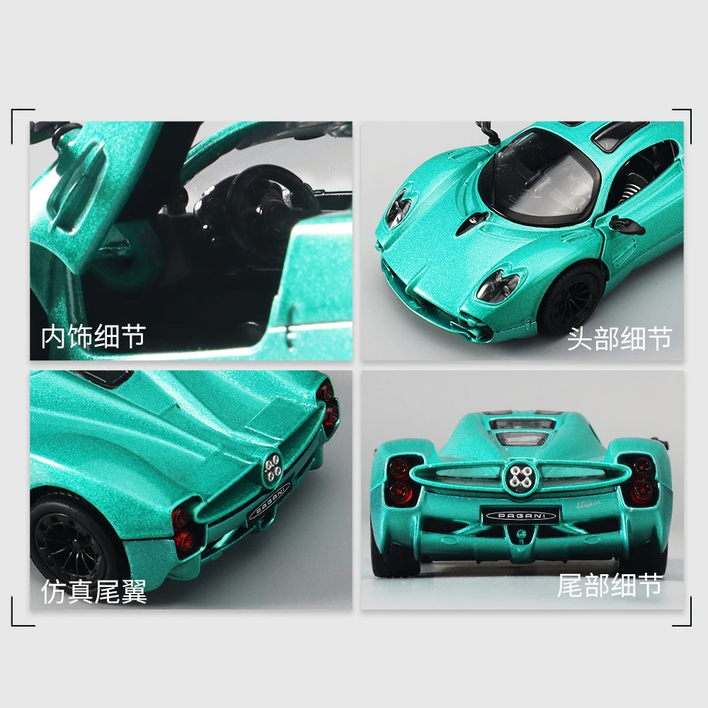 This exquisite 1:36 scale model of the Pagani Utopia supercar, finished in a striking red color, is a must-have for car enthusiasts and collectors alike. Crafted from a blend of high-quality alloy and plastic, it exudes a premium feel while capturing the distinctive features of the iconic supercar. Its aerodynamic lines and prominent headlights with chrome accents highlight its aggressive aesthetics. The unique upward-opening doors reveal a meticulously detailed interior, complete with a dashboard and seating. With finely designed wheels and authentic rear details, this model is not just a display piece; it's an experience awaiting your ownership.