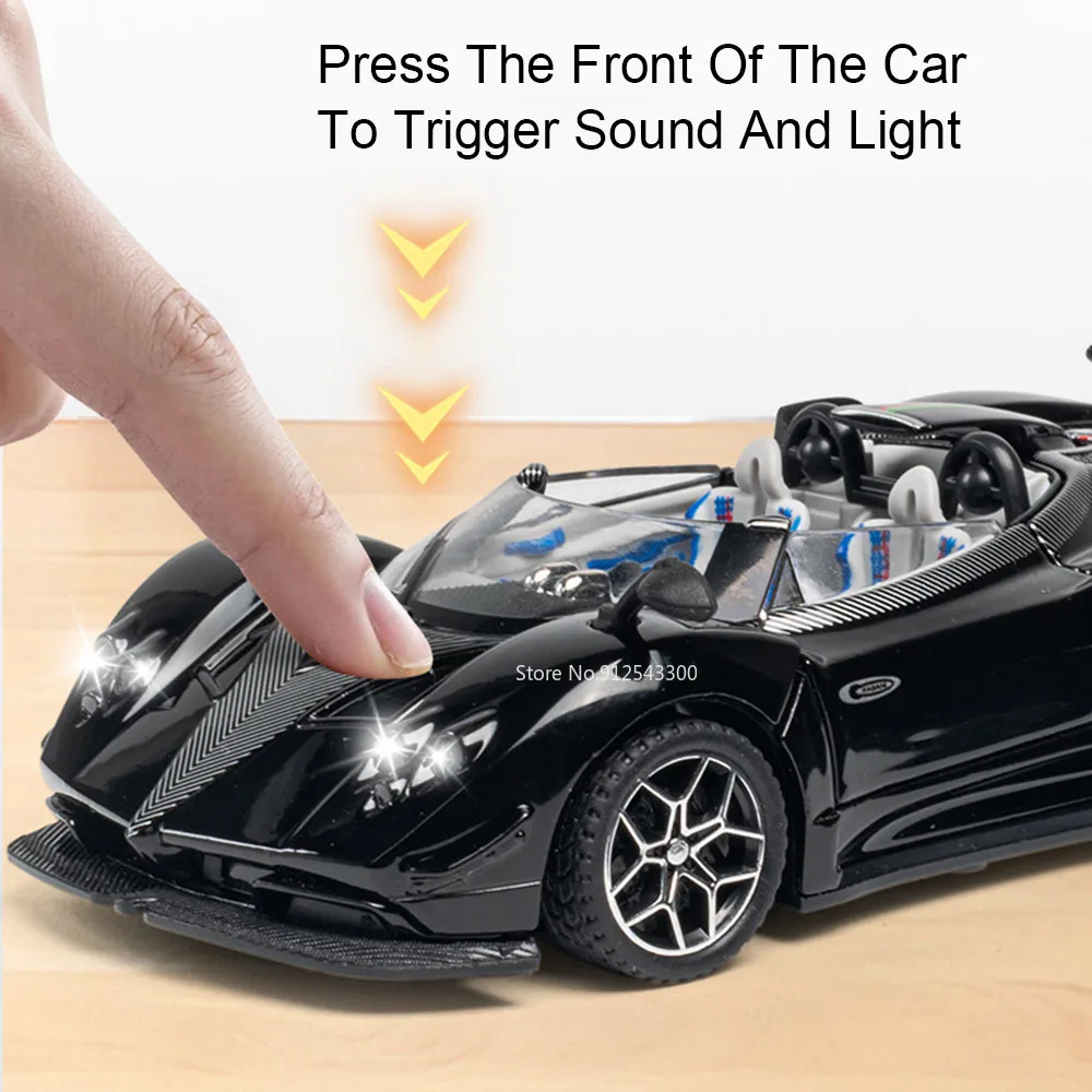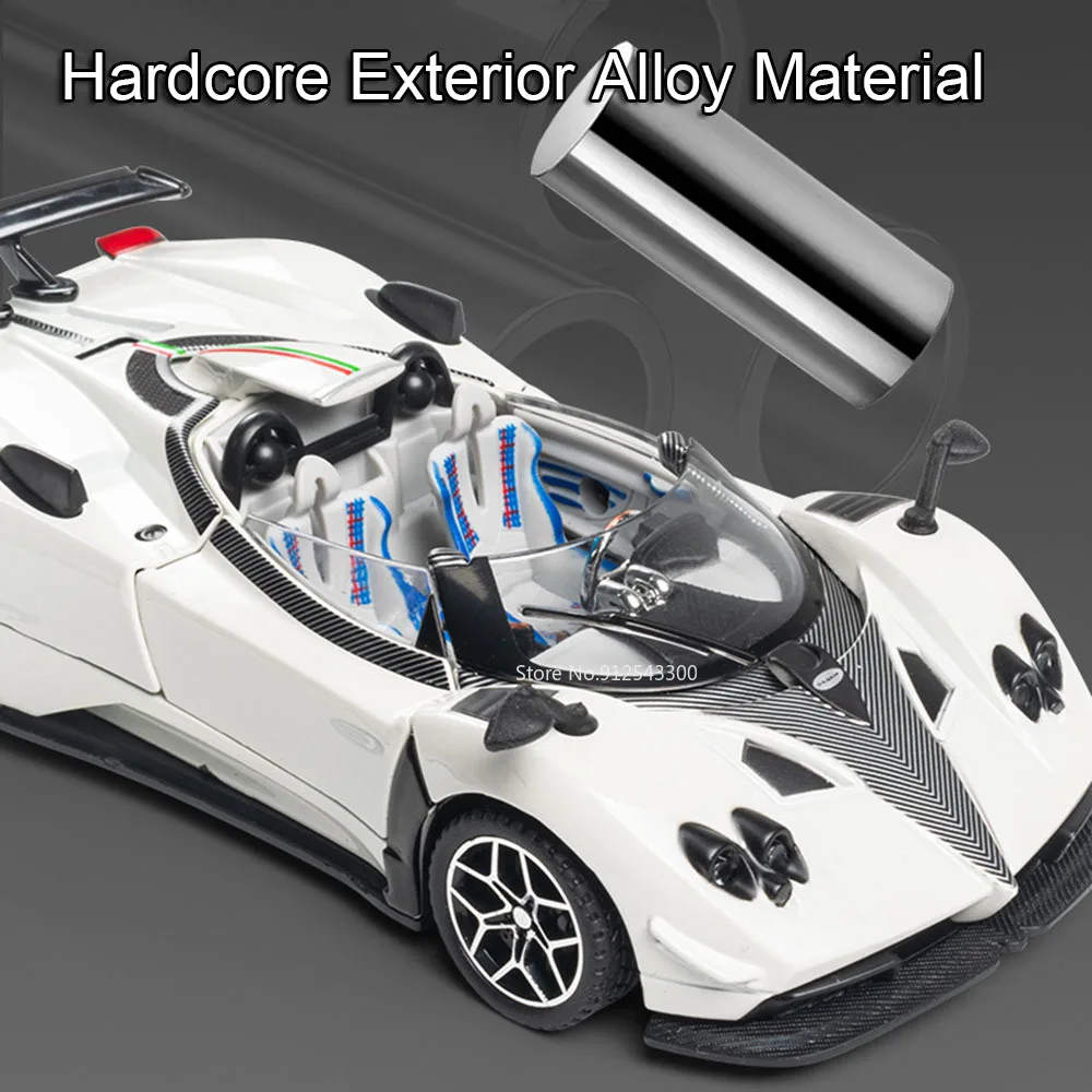 - High-simulation 1:32 scale model with exquisite detailing to replicate the real Huayra BC perfectly.