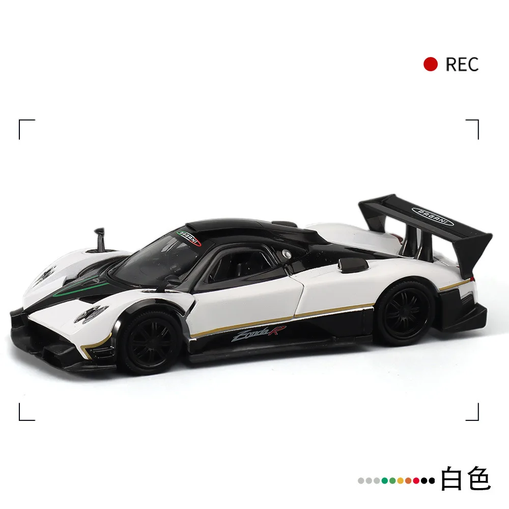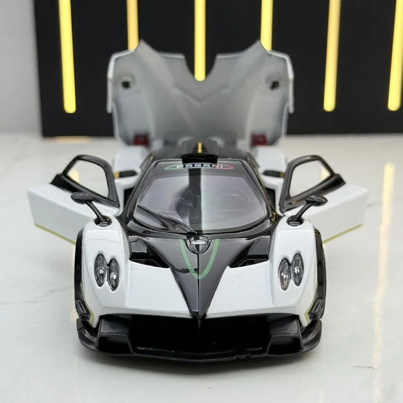 This exquisite 1/32 scale Pagani Zonda R Super Sport Car model is a must-have for collectors and enthusiasts alike. Dressed in a striking white color paired with bold black accents, it showcases an aggressive design that captures the essence of the iconic sports car. The intricate details, from the aerodynamic curve of the roof to the finely replicated rear lights and exhaust, enhance its realism. Made from high-quality diecast metal, this model is perfect for home decor, allowing you to showcase your passion for automotive excellence. It's an ultimate fusion of artistry and engineering that will surely impress anyone who lays eyes on it.