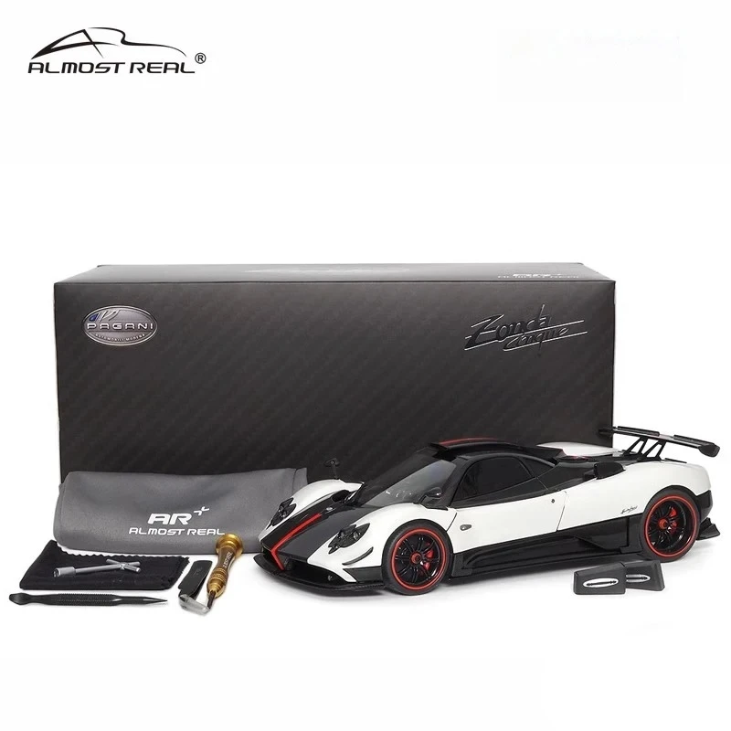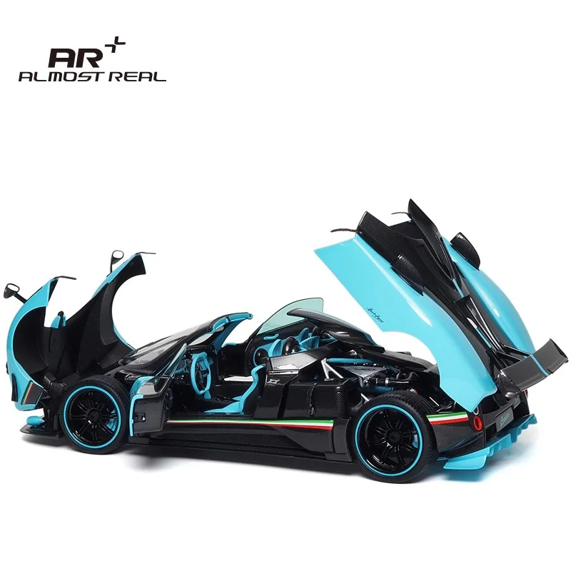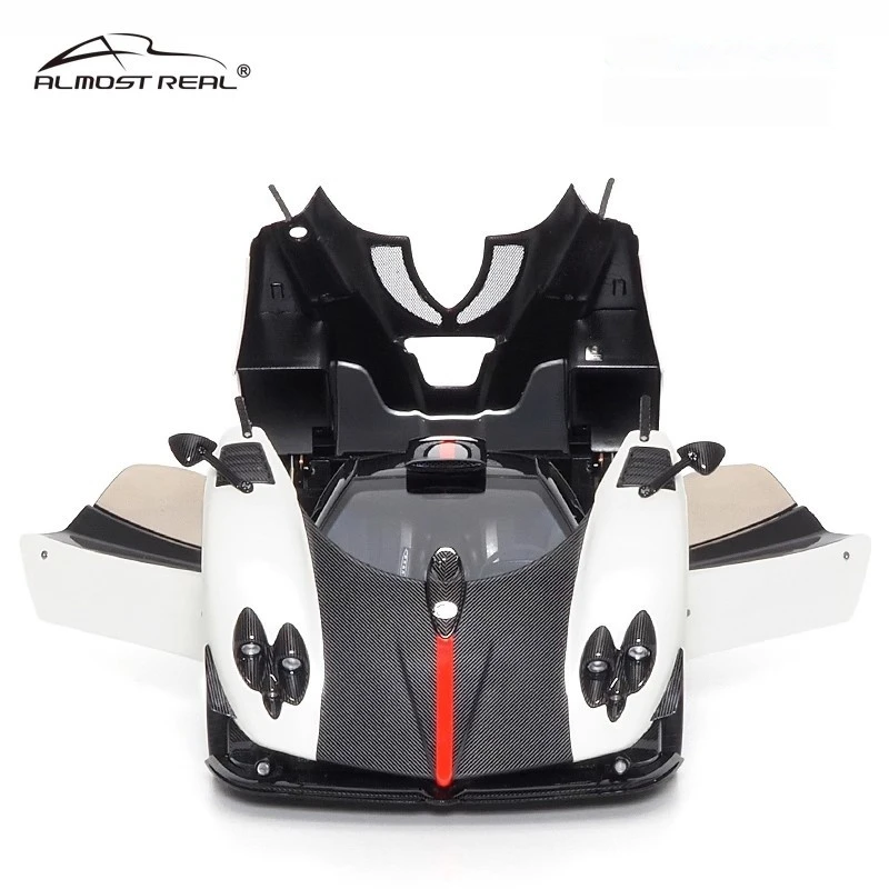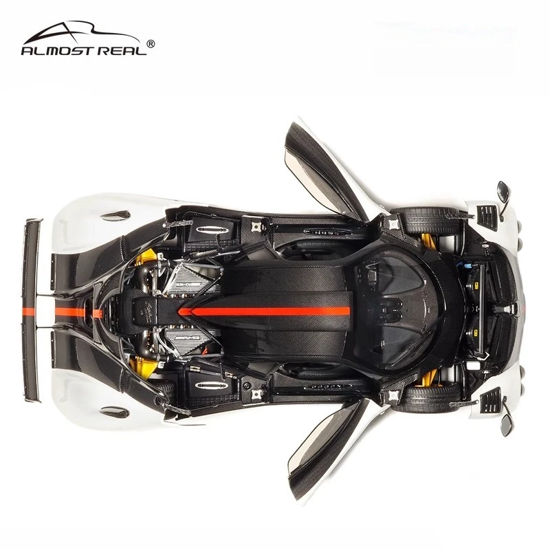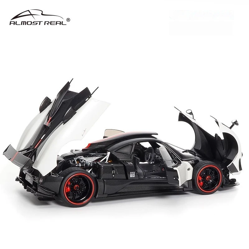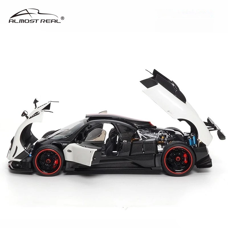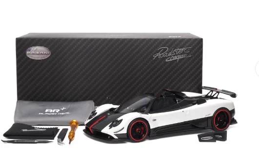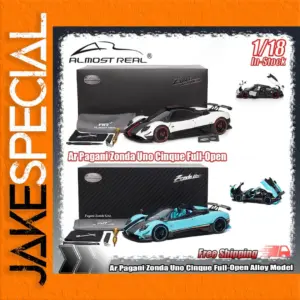 This 1:18 scale die-cast model of the Pagani Zonda Cinque features a full-open alloy construction, showcasing intricate details with a sleek aerodynamic design. Available in colors such as convertible red, white, yellow, green, and the Uno version, it is made primarily of durable metal and includes detailed interior elements visible through open gull-wing doors. The model boasts black wheels with red rings, low-profile tires, and a glossy surface emphasizing its sporty elegance. Non-electric and battery-free, this collectible combines high-performance aesthetics with realistic craftsmanship, adhering to CE certification standards and ideal for adult collectors and enthusiasts aged 14 and above.