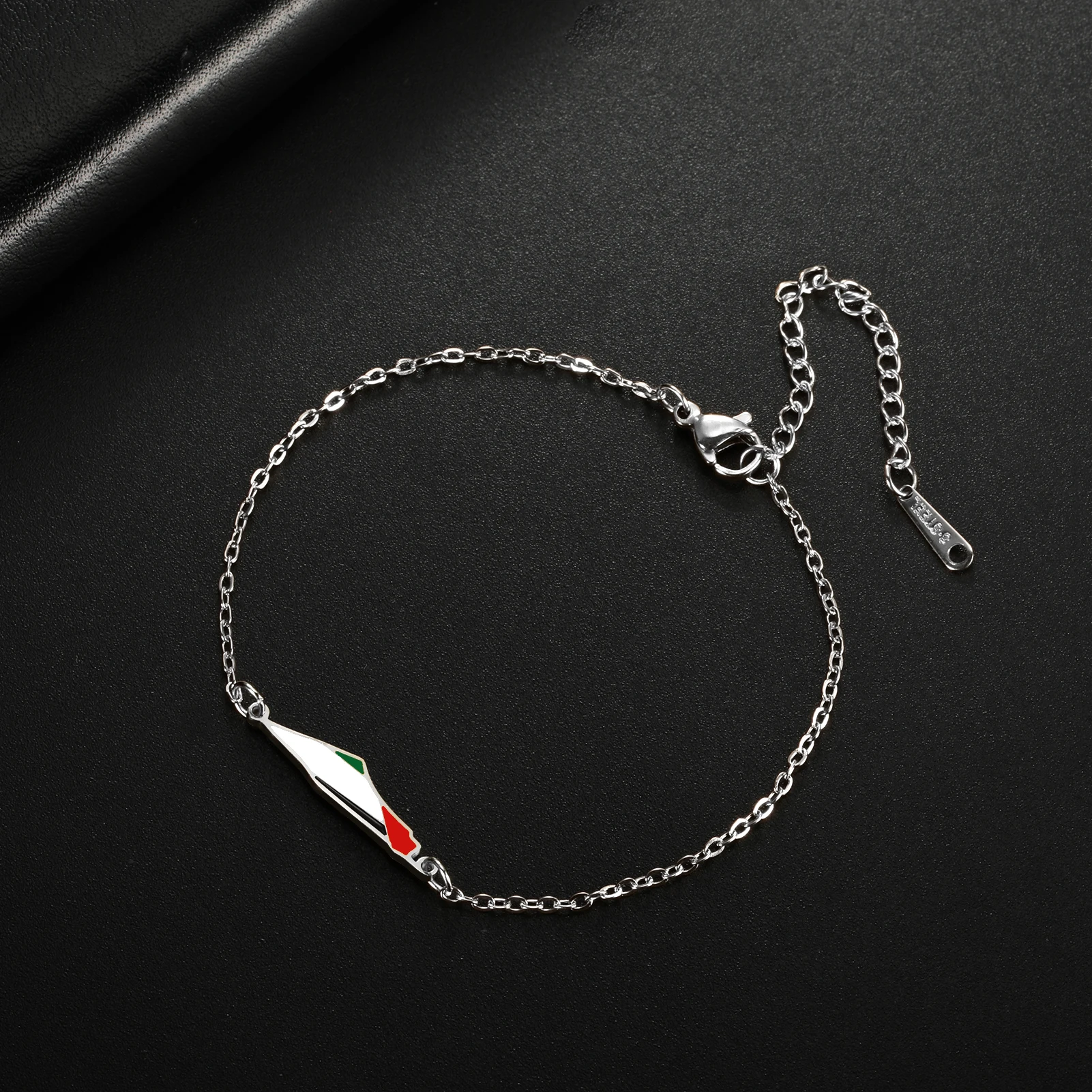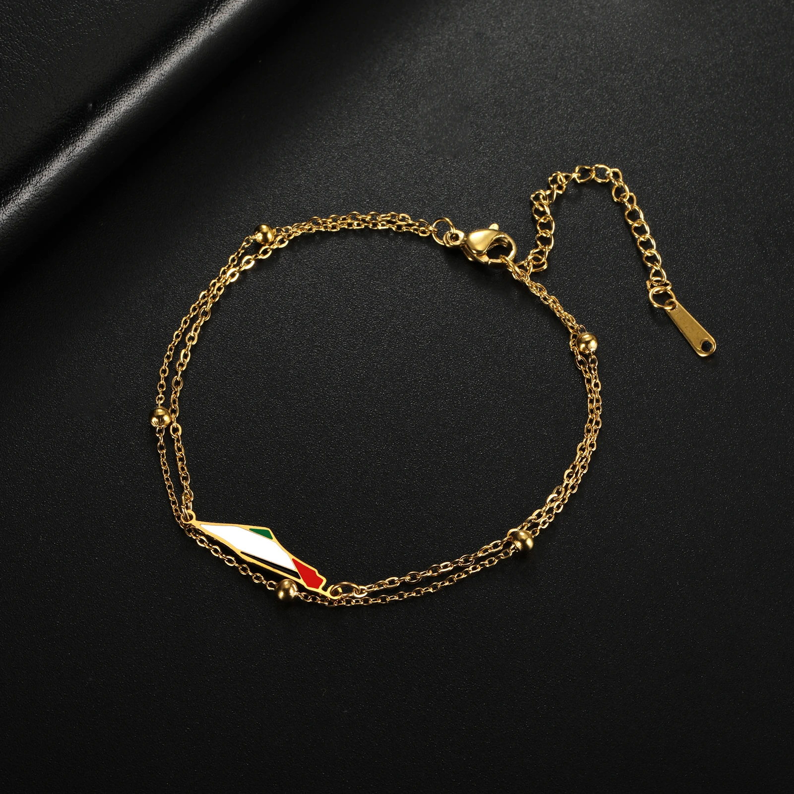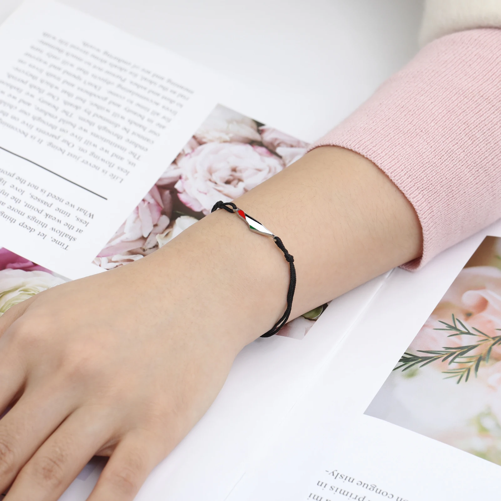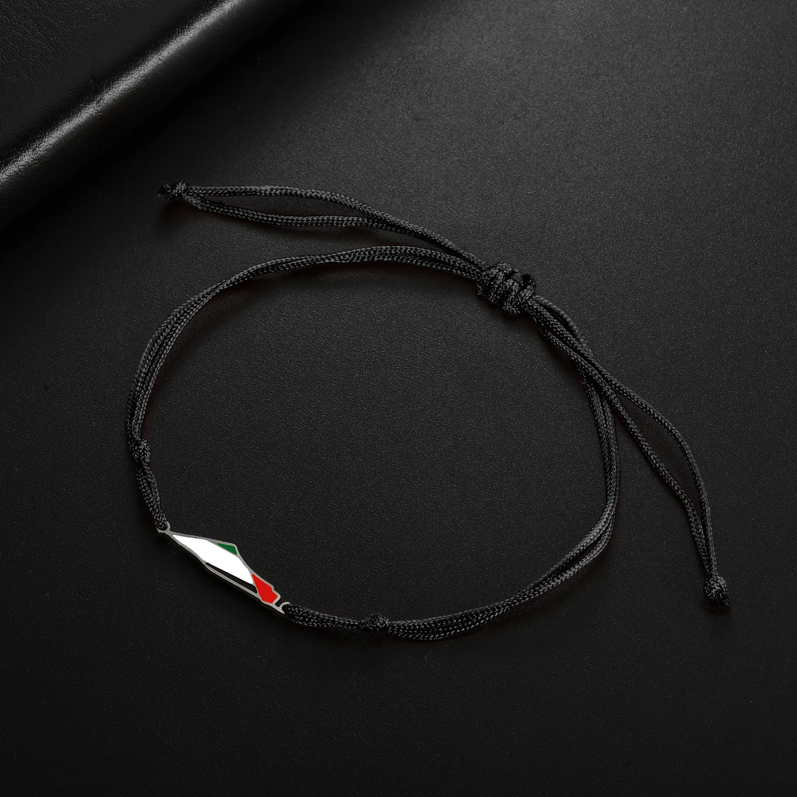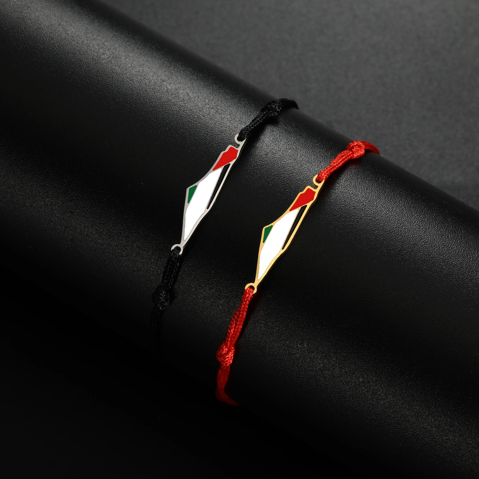 Experience the elegance and meaningful symbolism of this Palestine Map Steel Bracelet, crafted from durable stainless steel and weighing approximately 2 grams. Available in four stylish finishes—double-layer silver, double-layer gold, single-layer silver, and single-layer gold—it features a detailed Palestine map design that represents unity and peace. The bracelet is equipped with an adjustable toggle clasp, ensuring a secure and comfortable fit for all wrist sizes. Its lightweight construction, resistant to tarnishing and designed for daily wear, combines sophisticated minimalism with vibrant color accents in black or red rope options. Perfect for expressing your beliefs with refined style.