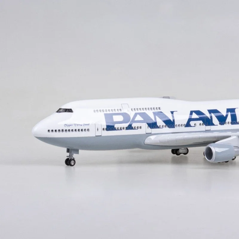 - Iconic “PAN AM” logo prominently displayed on the fuselage.