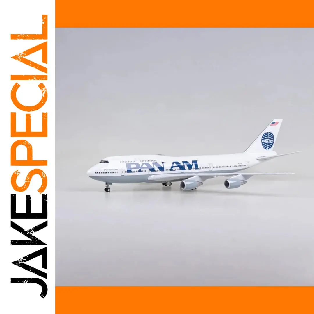 Immerse yourself in aviation history with this exquisite 1/150 Scale Boeing 747 model, proudly showcasing the iconic PAN AM Airline livery. Measuring 47 centimeters in length, this detailed diecast and resin construction captures the essence of the famous aircraft. Its pristine white body, accented with bold blue elements, exudes elegance and nostalgia. The standout feature is the iconic “PAN AM” logo beautifully displayed along the fuselage, complemented by the striking globe logo on the tail fin. This model comes with a base stand for a stunning display, ensuring it stands out whether you're at home or in the office.