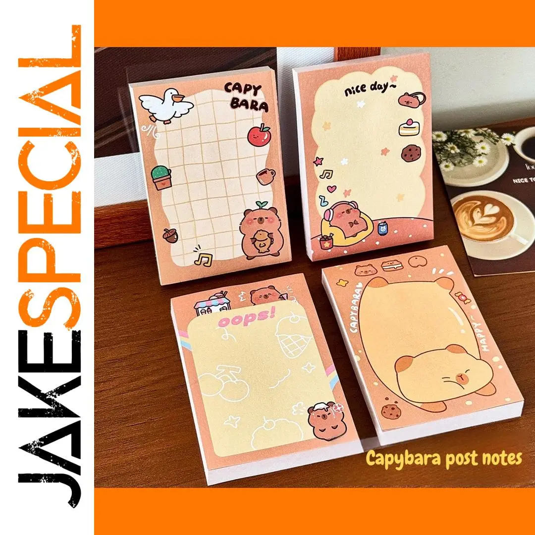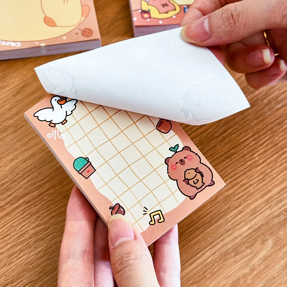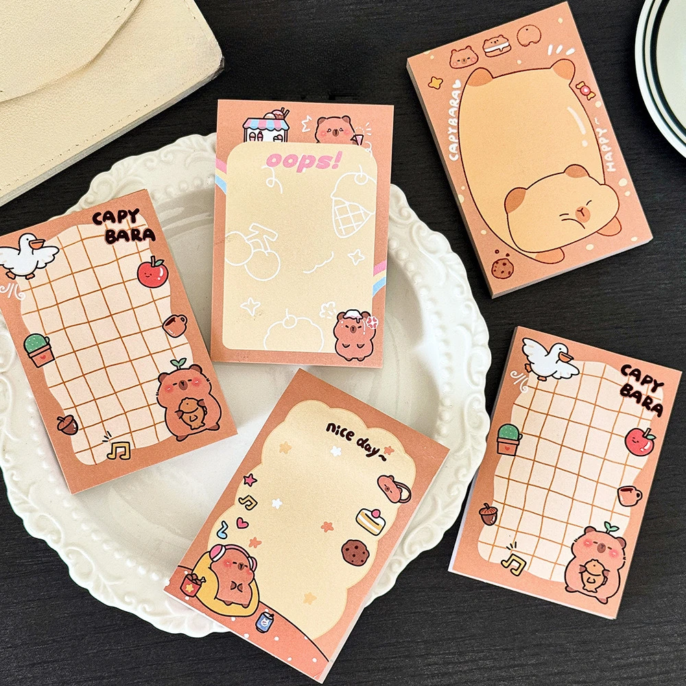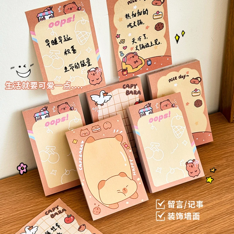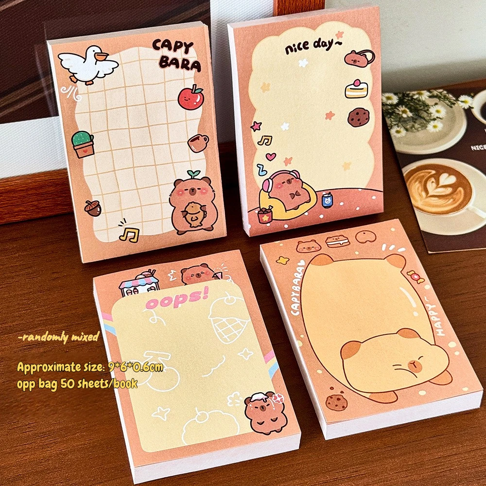 Delight in these 4 charming sticky note sets, each featuring adorable panda and capybara illustrations on 6×9 cm pages with 50 sheets per pad. Weighing approximately 15.5 grams per set, these self-adhesive memo pads are perfect for decoration or stationery use. The playful designs include whimsical line art of cute animals, colorful fruit, and dessert motifs on a warm peach background, available in two adorable variants: pandas and capybaras. Packaged individually in clear OPP bags, they add a cheerful, cozy touch to your workspace or personal notes. Ideal for anyone who loves cute, functional stationery.