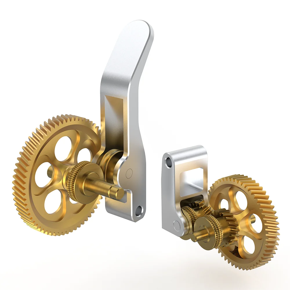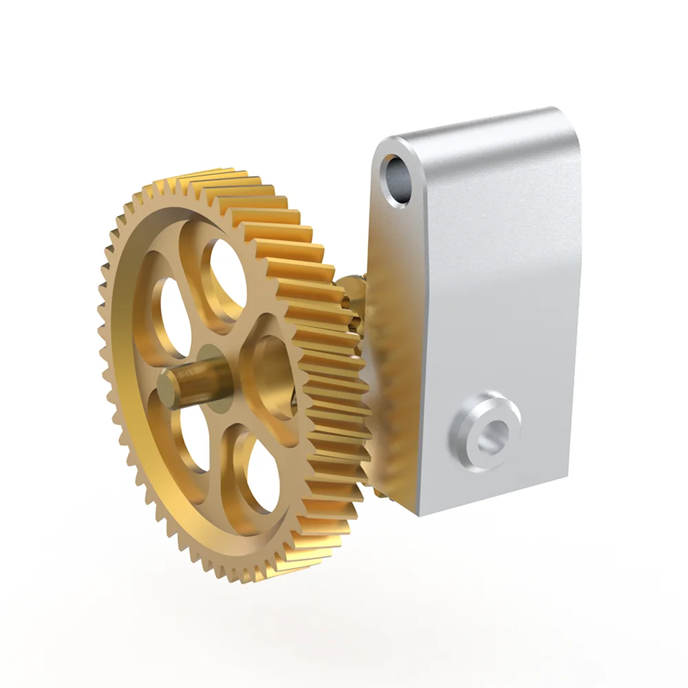 - The high-precision spur gears are crafted from nano-coated hardened steel with a shiny, metallic brass finish for optimal durability and precise filament control.