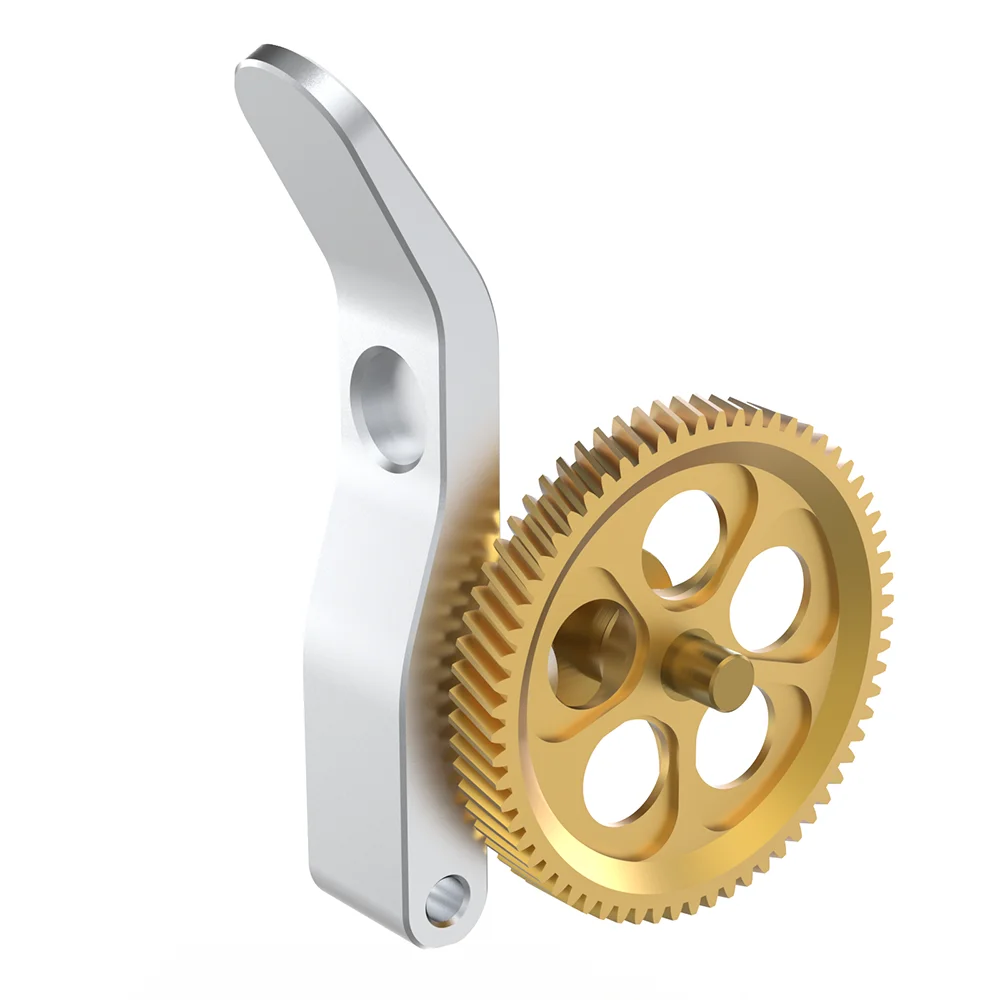 Enhance your 3D printing experience with the this upgrade kit featuring durable, high-quality materials. The nano-coated hardened steel spur gears, with their polished, shiny brass finish, deliver exceptional wear resistance and precise filament control. The optimized tooth design ensures smoother surface finishes on prints, providing professional results. The CNC-machined AL 6061 T6 aluminum idler arm offers superior strength, with a sleek brushed appearance and sharp edges, ensuring stability during extrusion. The self-lubricating brass gears include a recess for easy lubrication, extending their lifespan when paired with the included MoS2 grease. This drop-in upgrade is compatible with Bambu Lab P1P, P1S, X1C, A1, and A1 mini models, delivering reliability and improvement in your printing setup.