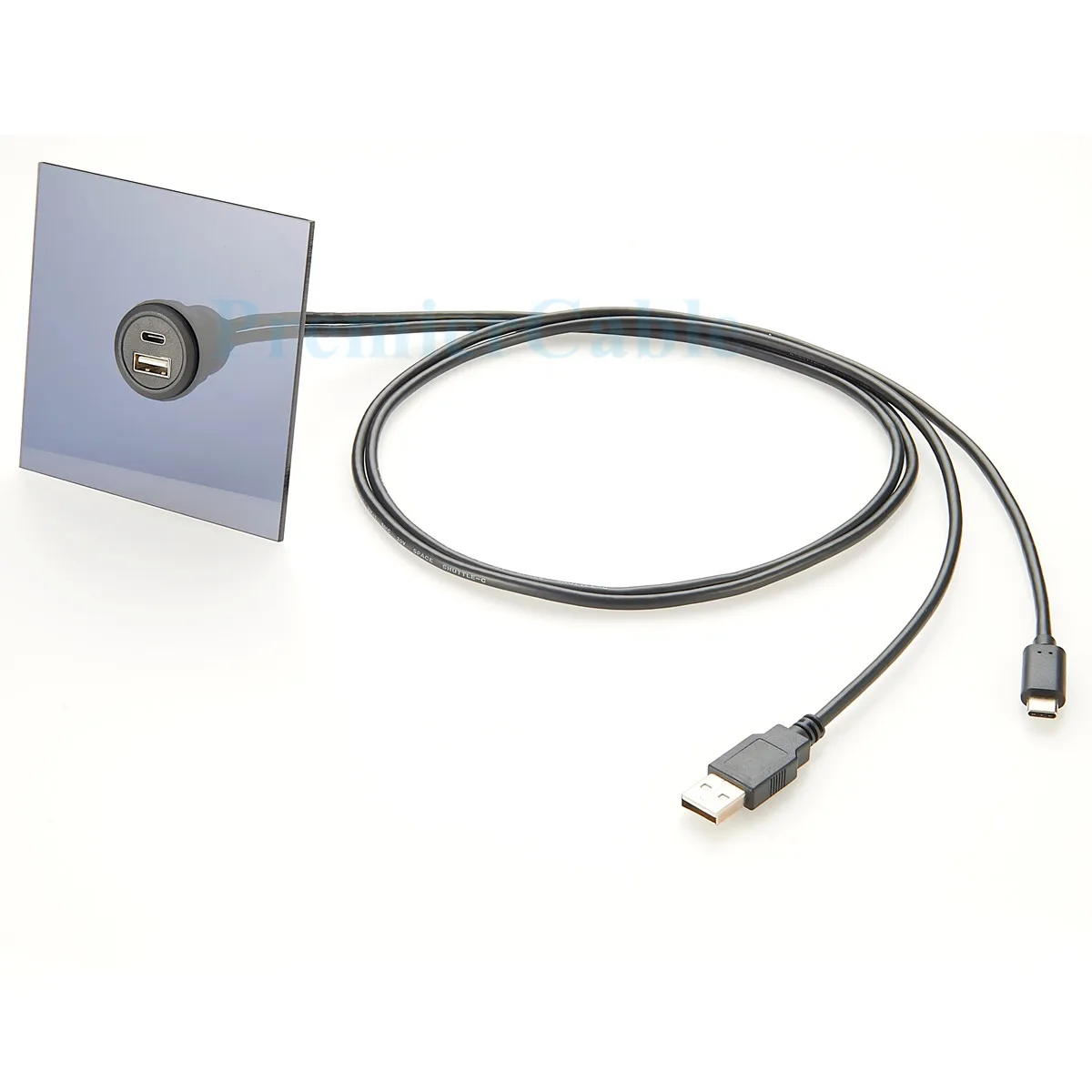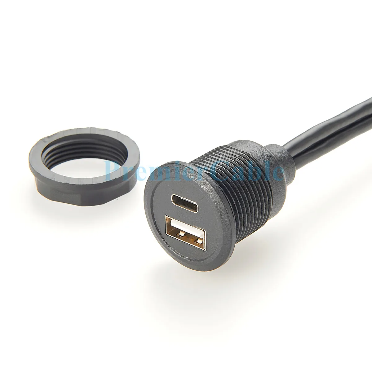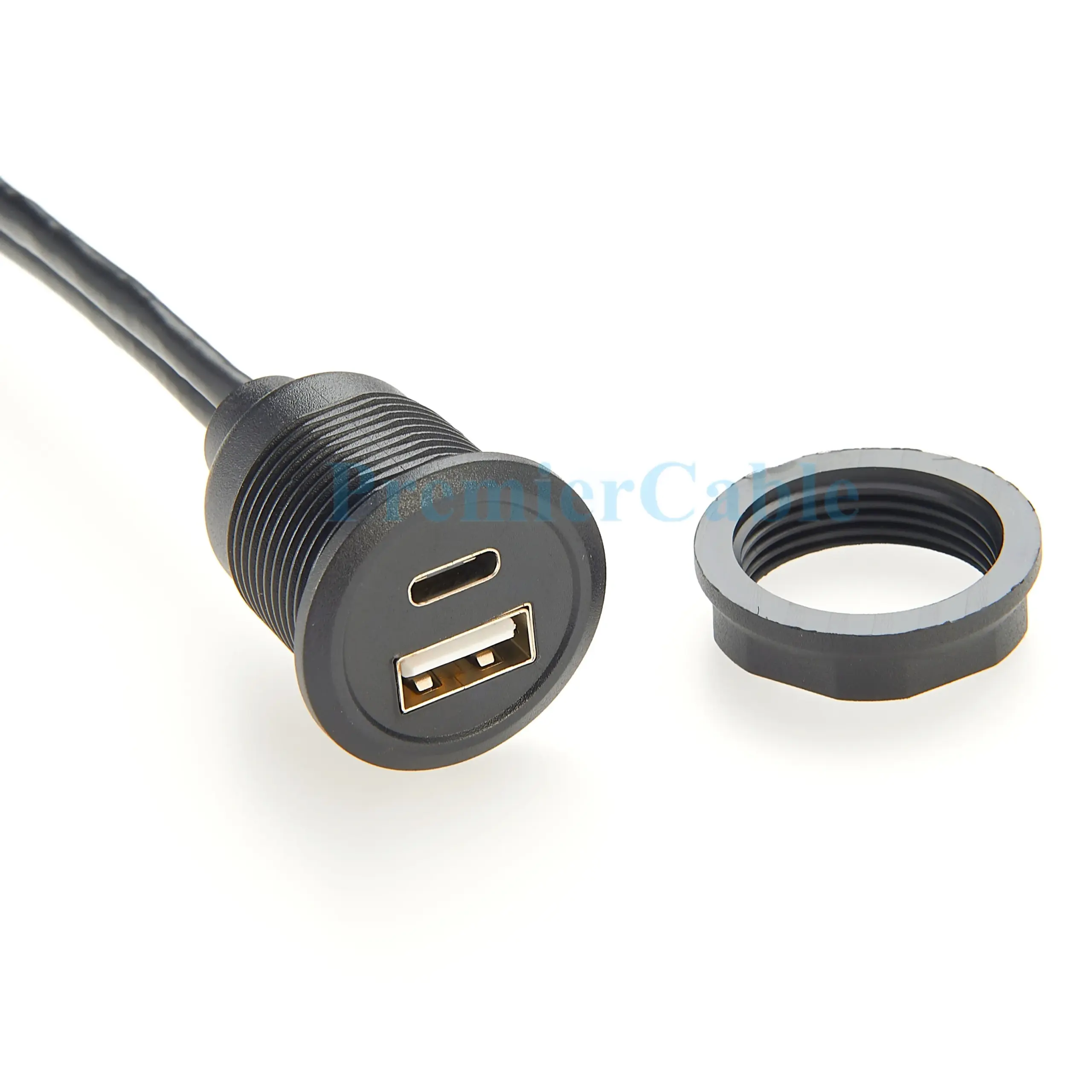 Panel Mount USB C & USB 2.0 Extension Cable 1m