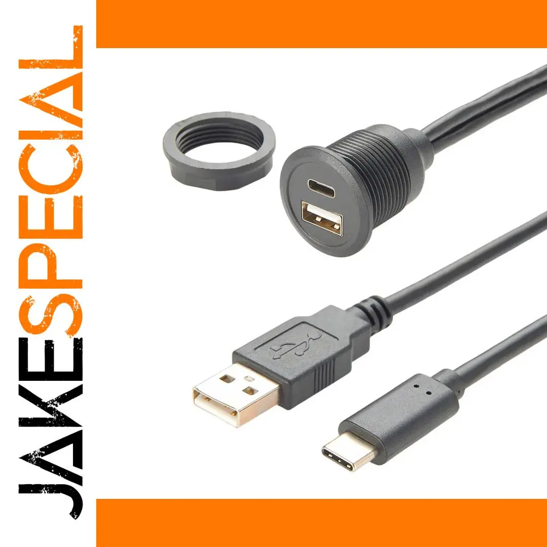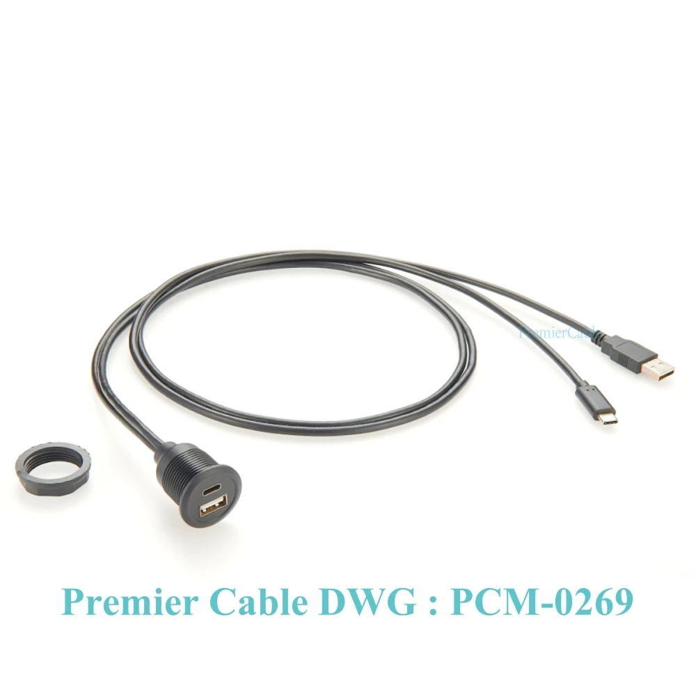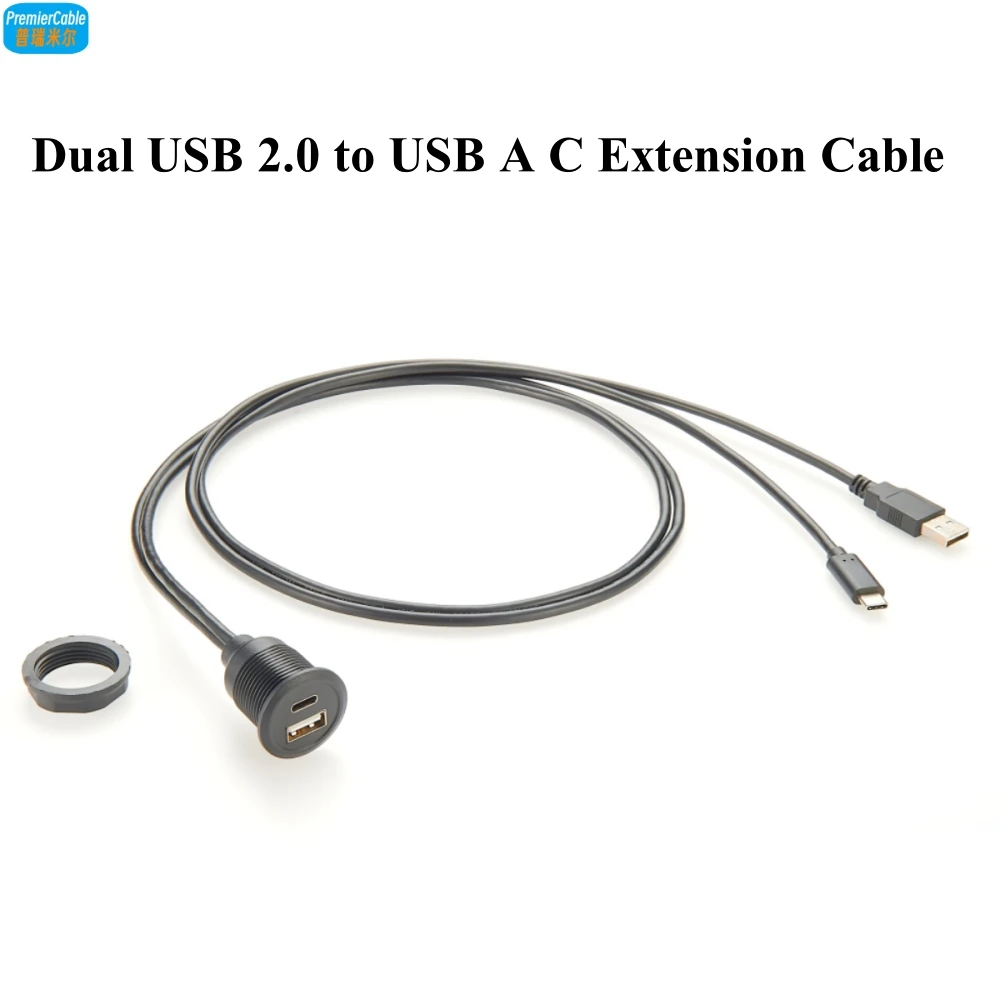 Panel Mount USB C & USB 2.0 Extension Cable 1m
