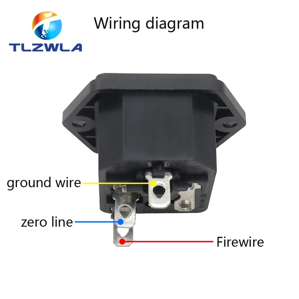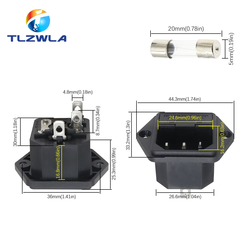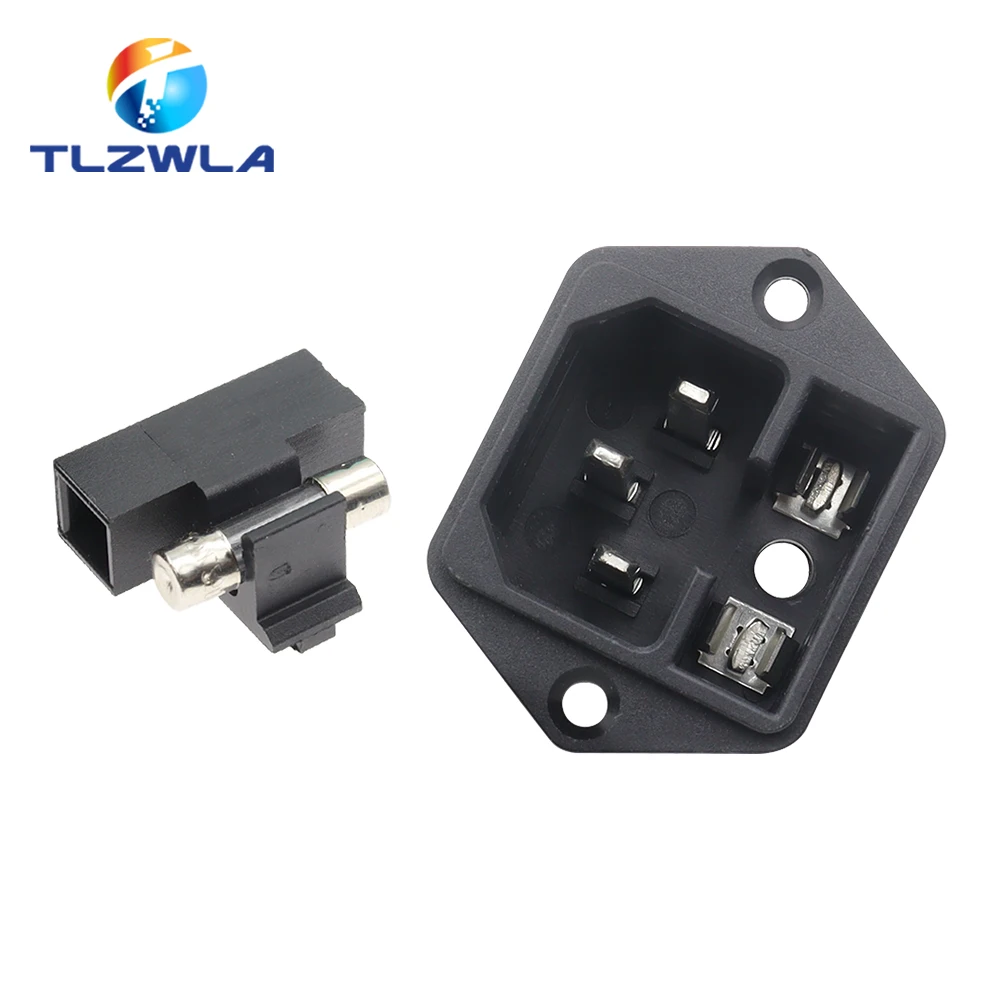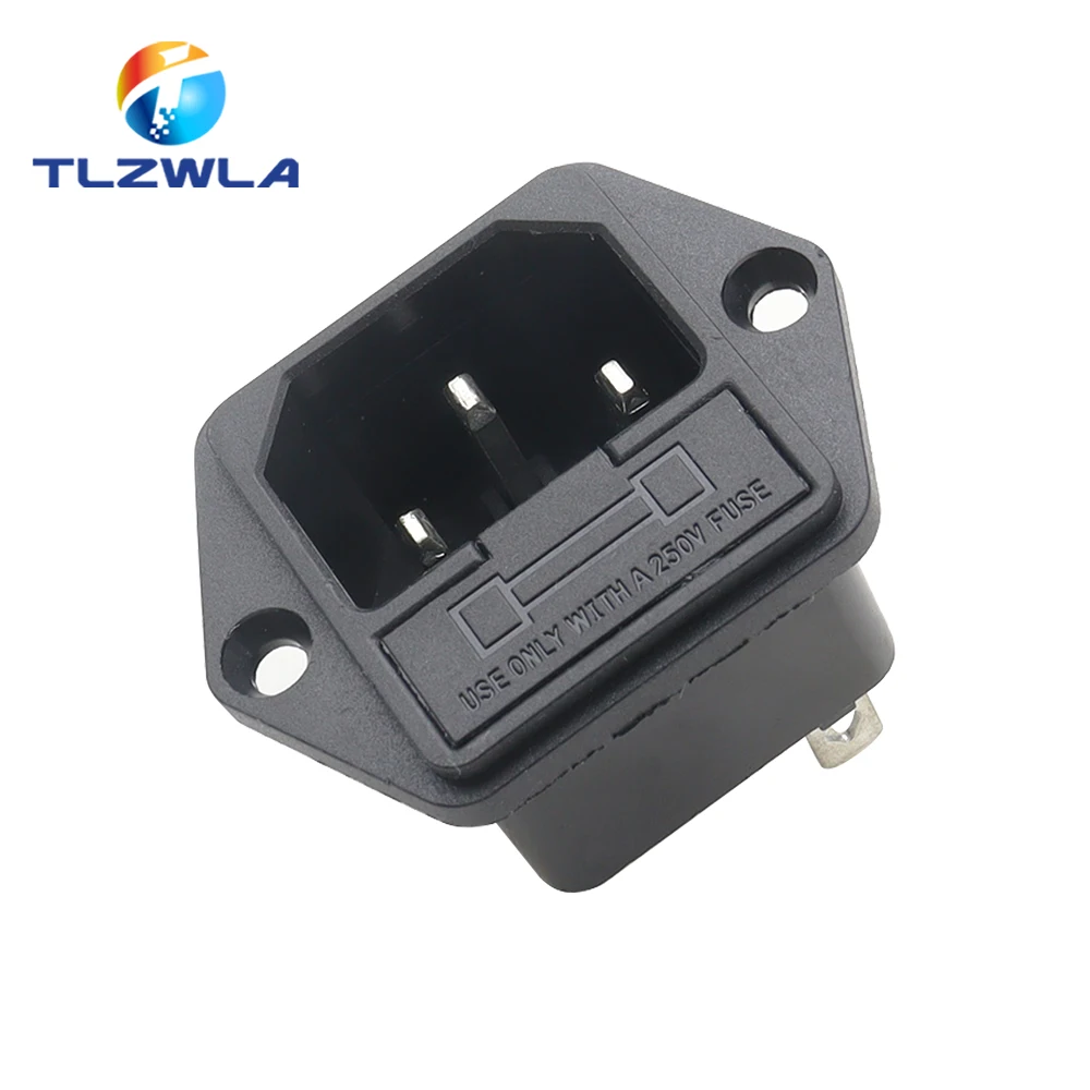 Experience reliable power connections with this durable panel-mounted IEC 60320 C14 male power inlet, supporting up to 10A at 250V AC. Designed for seamless integration, it features a robust black plastic body with four mounting screw holes and a recessed socket with three metallic prongs for secure connection. Equipped with a versatile fuse holder compatible with 5 x 20mm fuses, it is suitable for 24V applications. Constructed from quality materials with copper or iron pins, and certified with CE and RoHS, this inlet offers stability, safety, and high-performance for industrial, electronics, and power supply setups, ensuring long-lasting, dependable operation.
