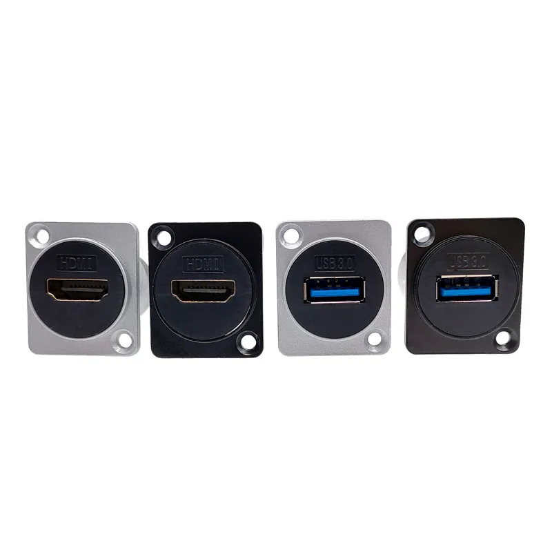 Experience seamless connectivity with this panel-mounted connector featuring a female D-type metal interface compatible with USB 3.0 and HDMI standards. Available in sleek silvery or black finishes, it supports input voltages of 1V, 2V, 4V, 5V, 12V, and 20V, up to 30V, ensuring versatile power options. Designed for 90° orientation, it offers high-speed data transfer and durable, reliable performance. Crafted for professional applications, this connector combines a modern aesthetic with robust construction, making it ideal for high-performance setups that demand precise and secure panel mounting. Perfect for demanding electronic, audiovisual, or data transfer projects.