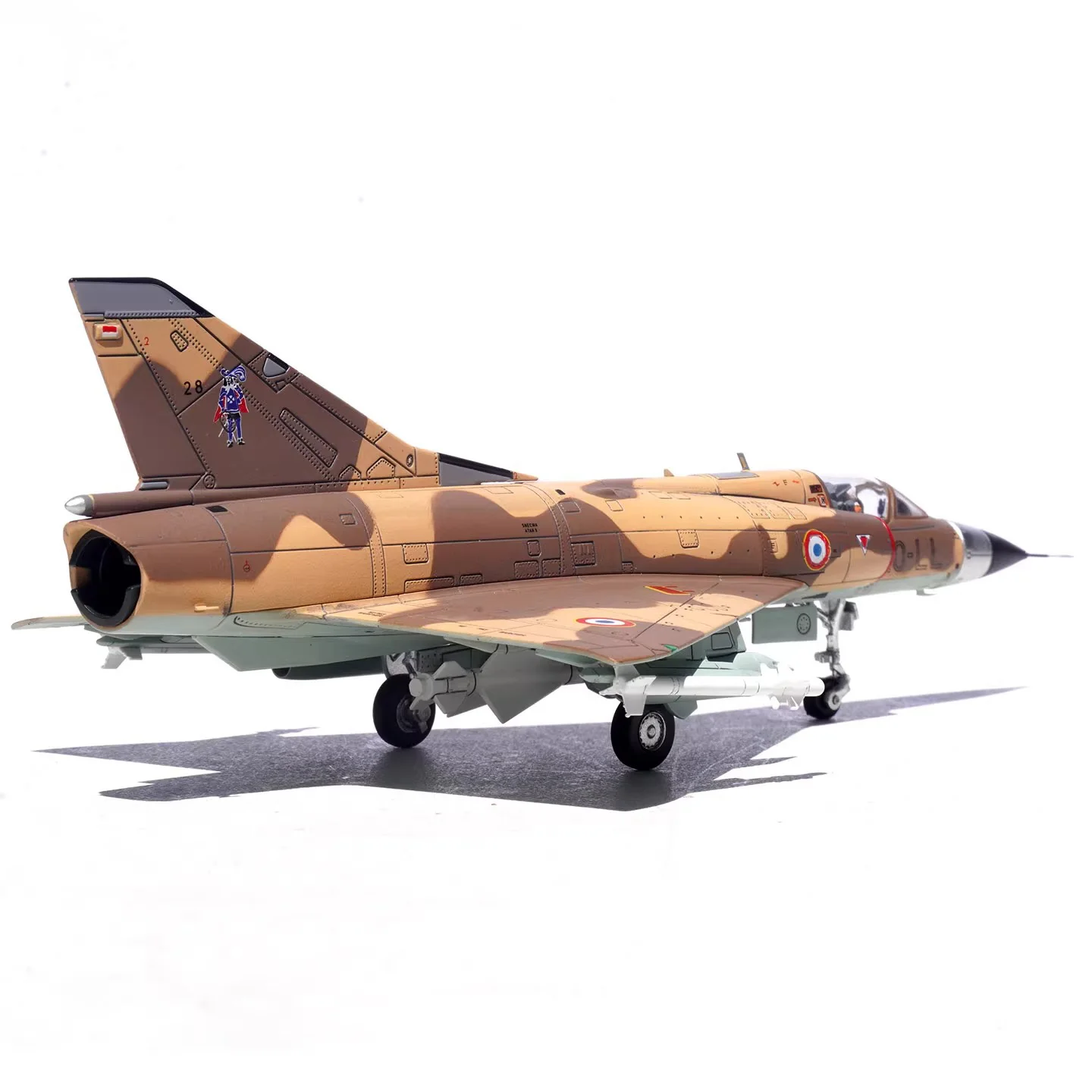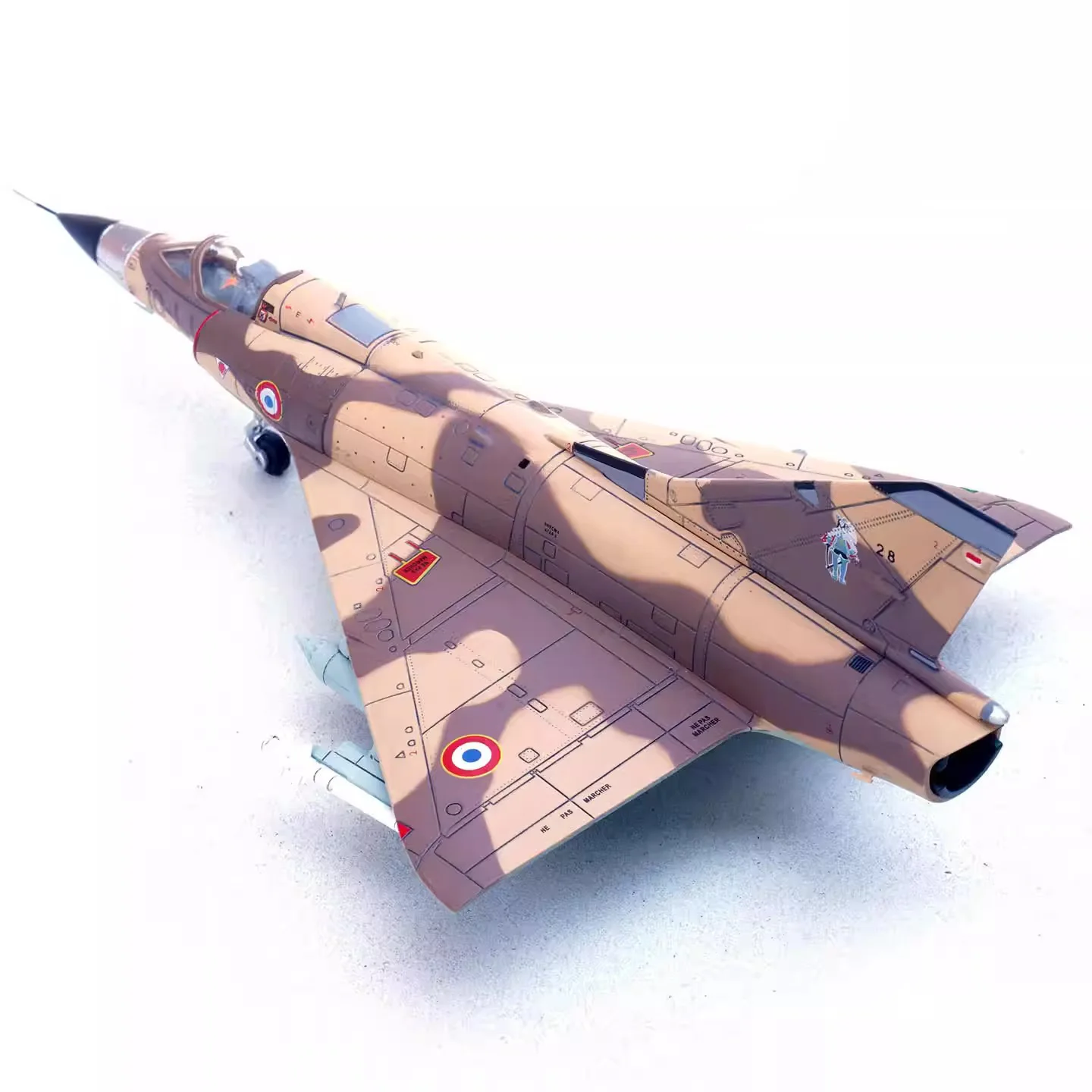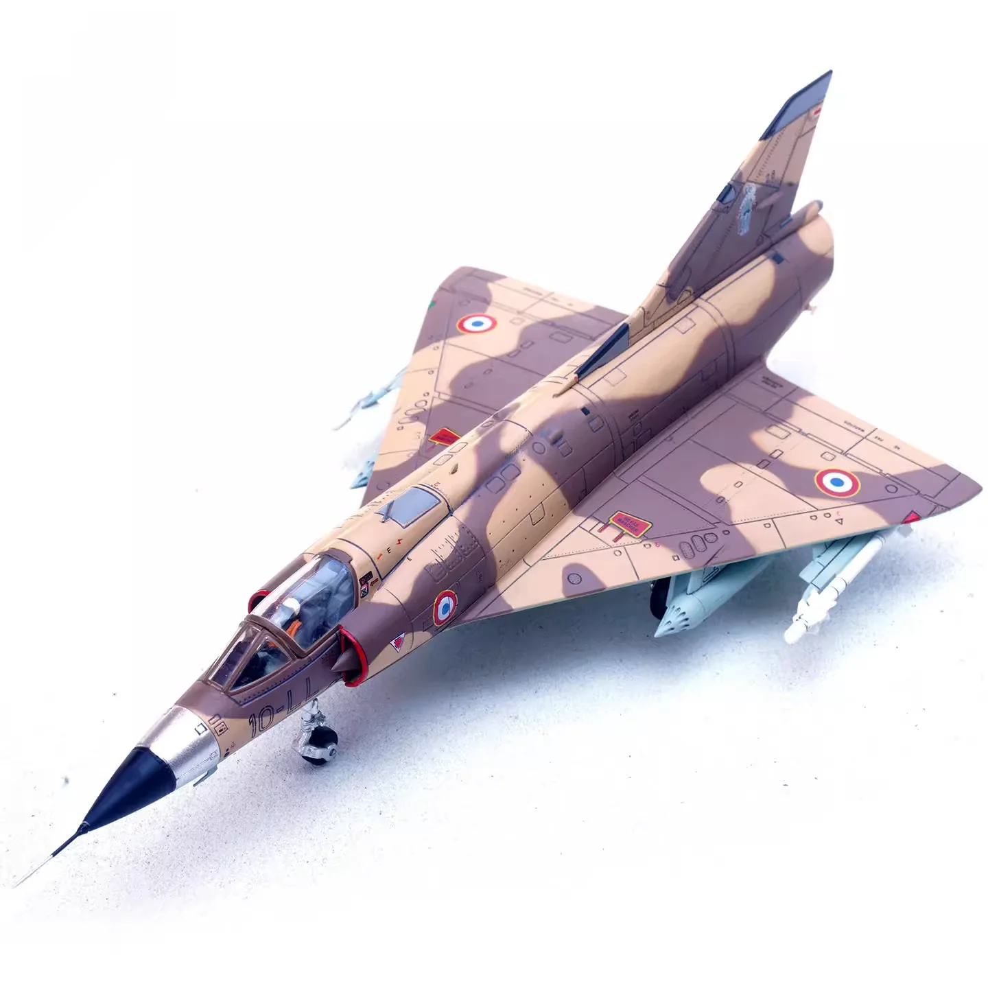 - Intricate camouflage paint scheme in brown, tan, and light green.