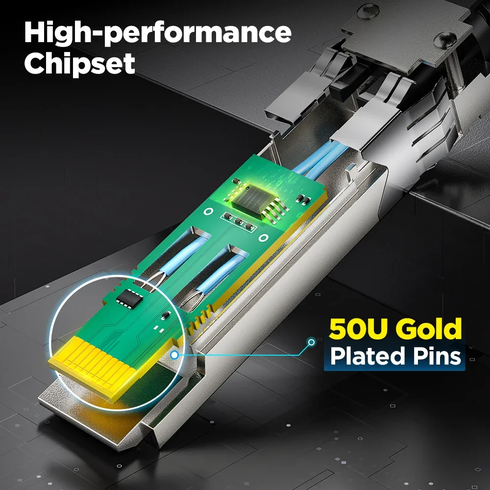 - Designed for compatibility with a wide range of devices such as switches, routers, and storage infrastructure, and supports SFP+ MSA standards.