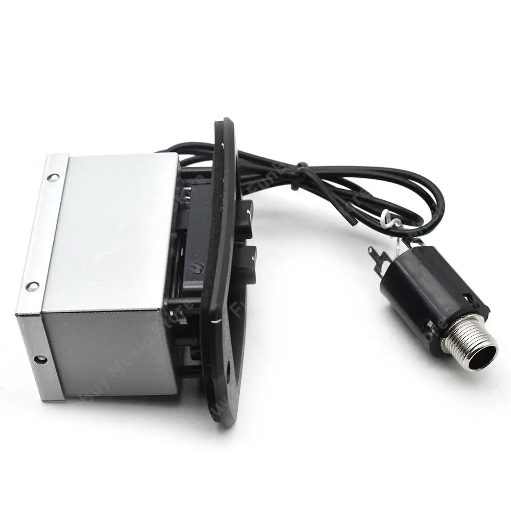 - This compact preamp measures approximately 60mm x 40mm x 15mm, fitting discreetly under the saddle of most acoustic guitars for seamless integration. Its sturdy build ensures long-lasting durability.