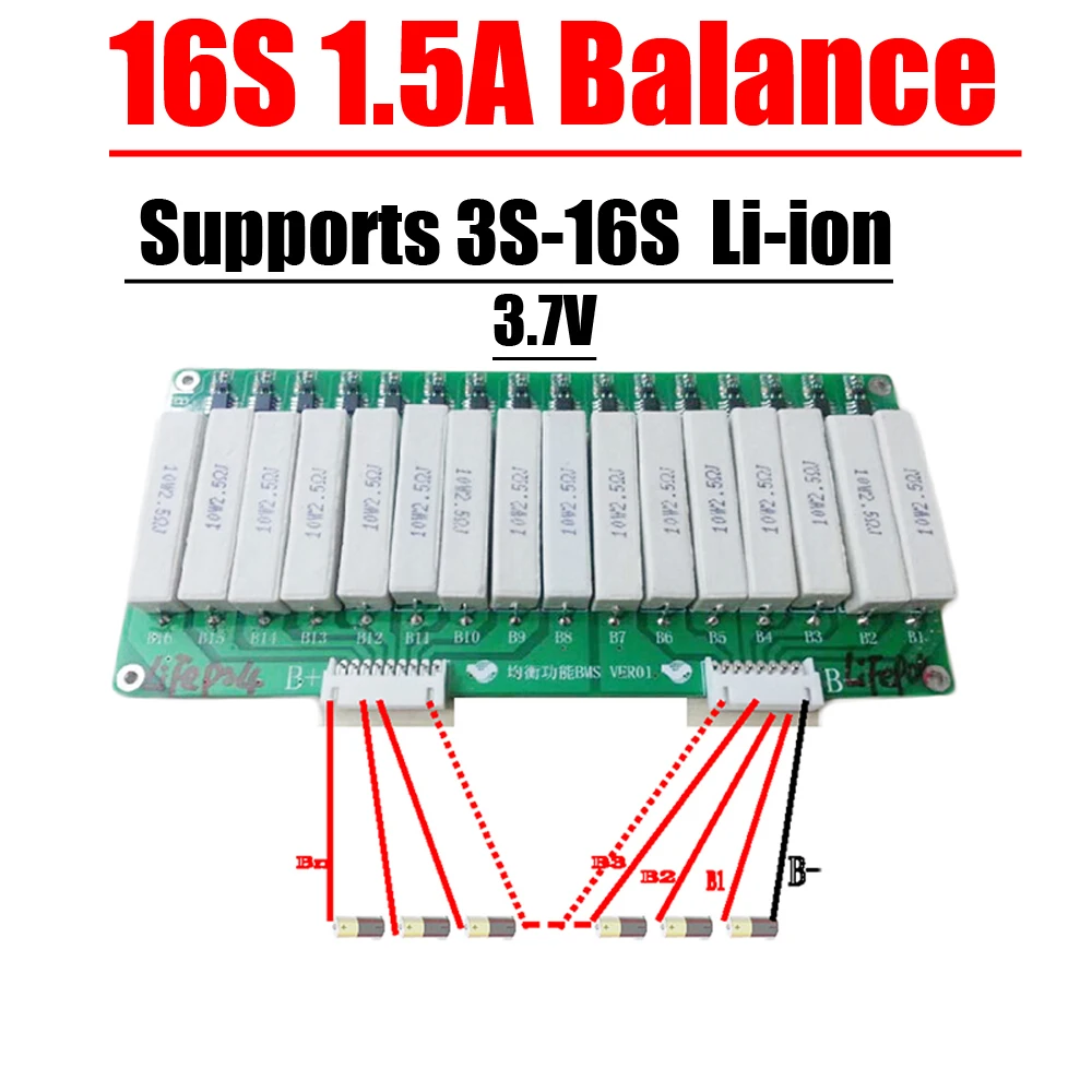 Imagine maintaining perfect voltage levels across your lithium batteries with ease. This passive battery balance board ensures your series-connected cells stay balanced, prolonging battery life and improving performance. Designed for 4S, 8S, and 16S configurations, it supports various lithium chemistries including Li-ion, Li-Polymer, and LiFePO4. Its sleek, compact design with minimalistic aesthetic fits seamlessly into your setup. The embedded LED indicators provide clear status updates, helping you monitor balance function effortlessly. Whether you're building an energy storage system or powering remote devices, this balance board offers precision, reliability, and ease of use. Trust in its quality to keep your batteries performing at their best long-term.