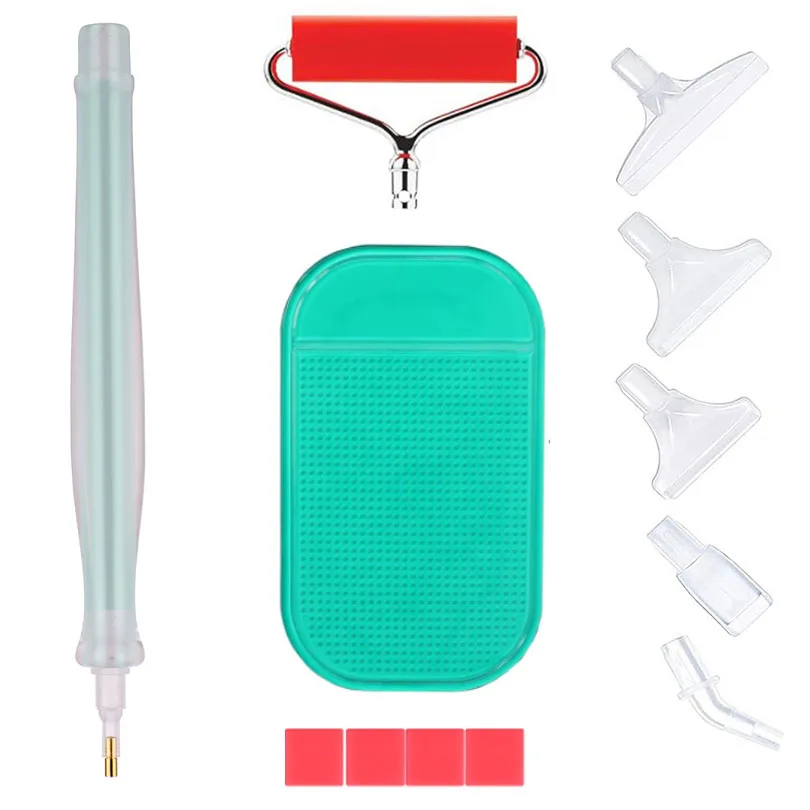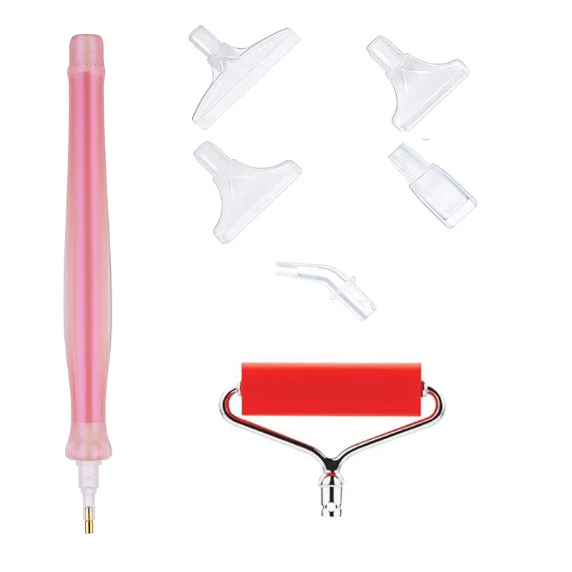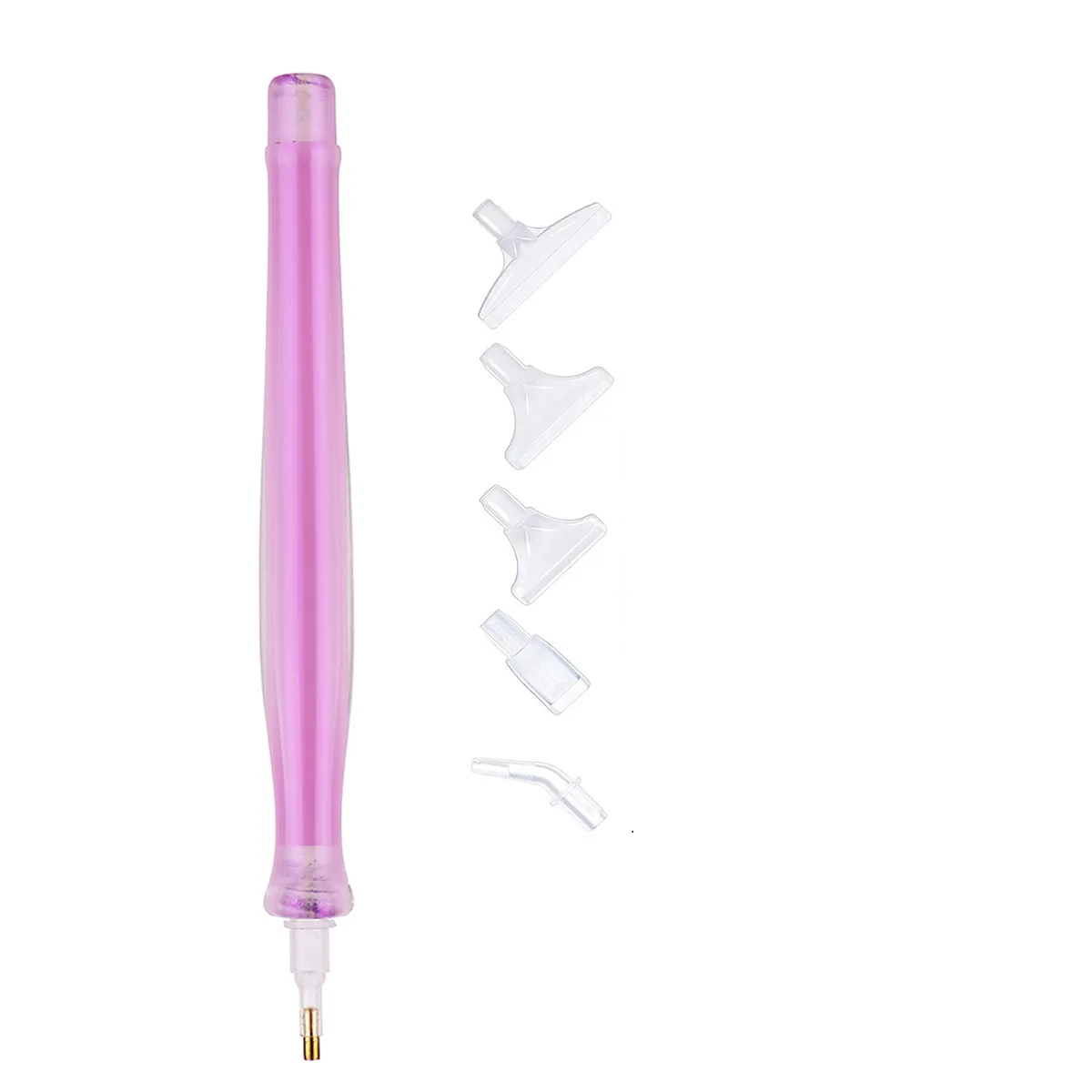 - Clear, transparent resin pen heads with slots for round diamonds, supporting detailed and precise placement. Heads are removable and compatible with five replacement pen tips.