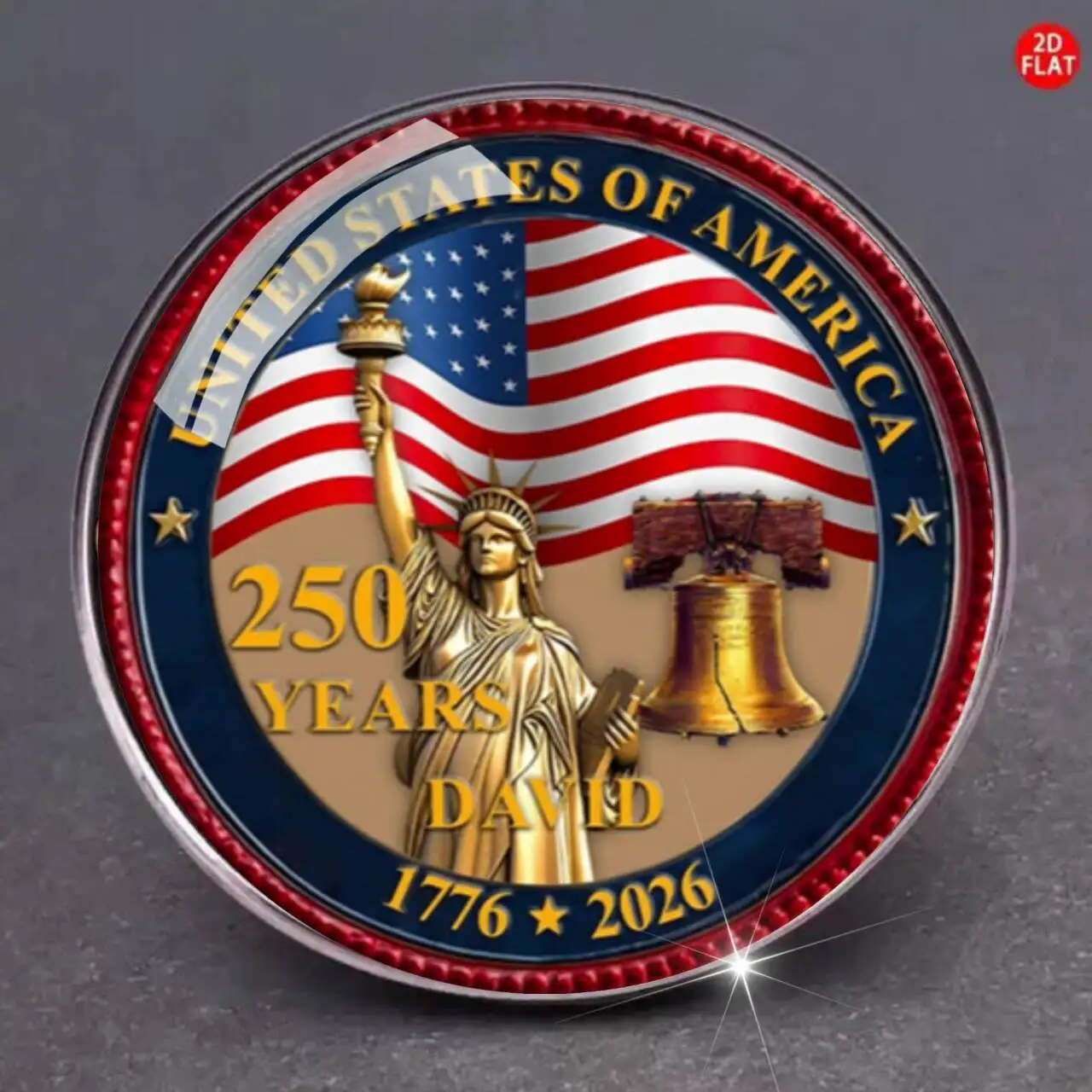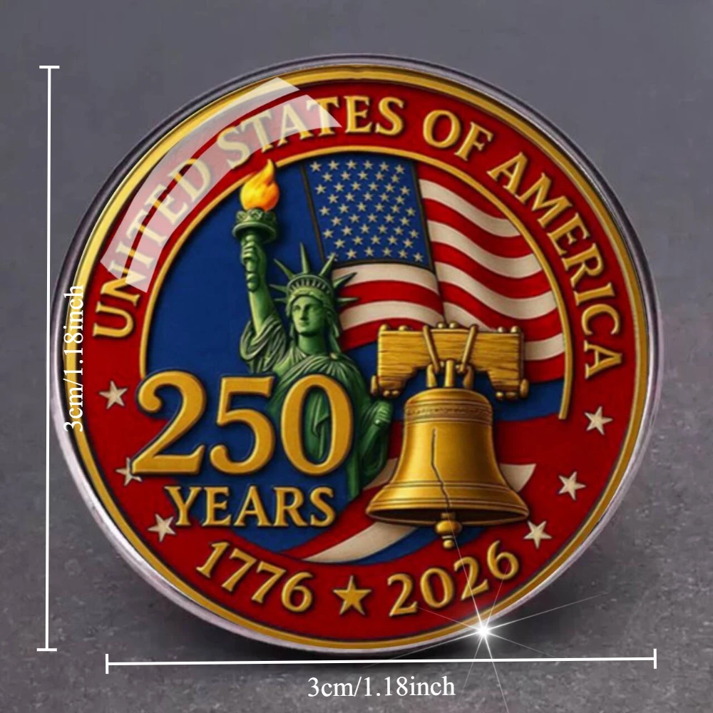 Celebrate American history and patriotism with this vintage-style commemorative medal, crafted from alloy and measuring approximately as shown in the figure. Available in a range of colors including dark gray, plum, light green, light gray, dark khaki, deep blue, army green, light yellow, and burgundy, it features a detailed design with the Statue of Liberty, American flags, and the Liberty Bell, all set against a vibrant background of stars and stripes. Perfect for unisex wear, it can be attached to jackets, backpacks, or hats for a bold patriotic accent. Each medal is tested for quality and safety, with a size tolerance of ±1-3mm.