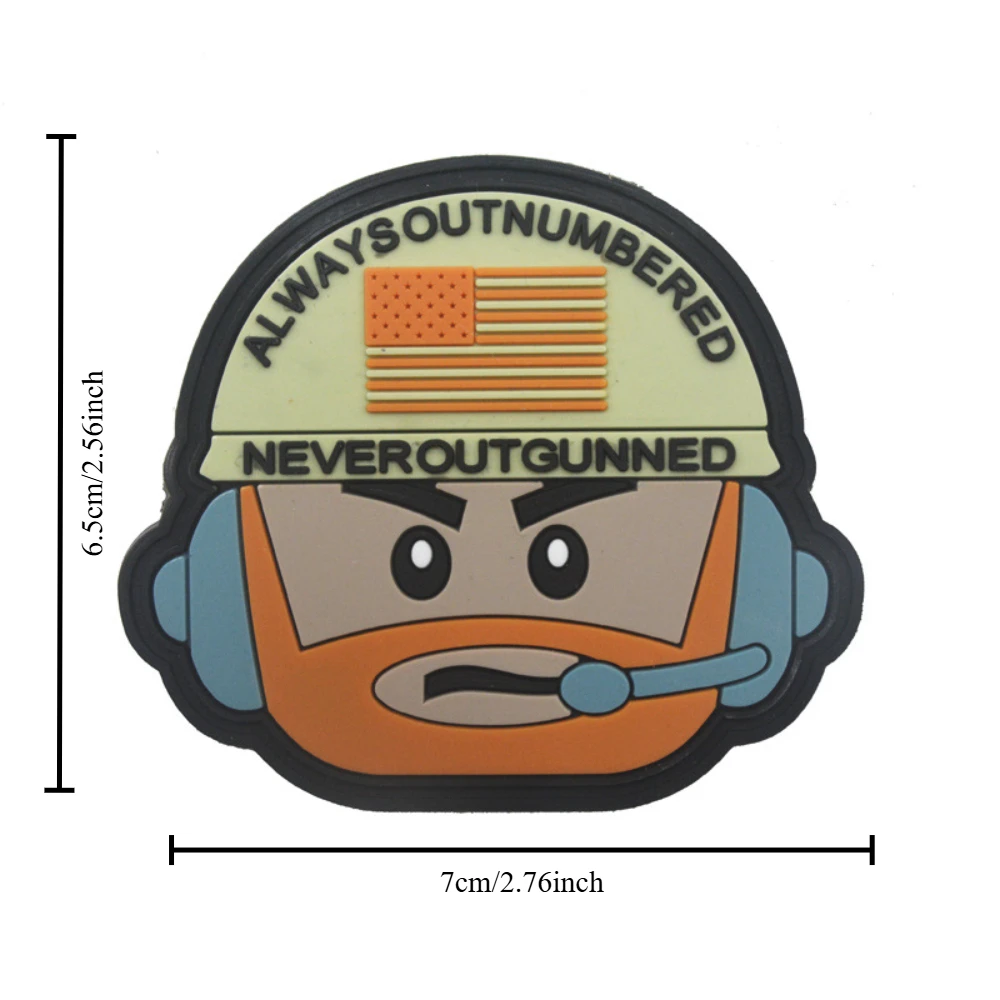 Imagine adding a bold, eye-catching touch to your outdoor gear with this versatile PVC tactical badge. Its playful soldier head design combines humor and patriotism, making it perfect for military enthusiasts, outdoor adventurers, or anyone wanting to personalize their accessories. The badge’s vivid colors and 3D embroidery give it a lively, textured appearance that stands out on jackets, backpacks, or helmets. Crafted from eco-friendly PVC, this lightweight patch is durable and easy to attach using the hook-and-loop (Velcro) backing. Whether you prefer the colorful styles or the clean monochrome outline, this badge allows you to showcase your individuality and combat spirit with confidence. It’s an excellent choice for customizing gear in a fun, patriotic way.