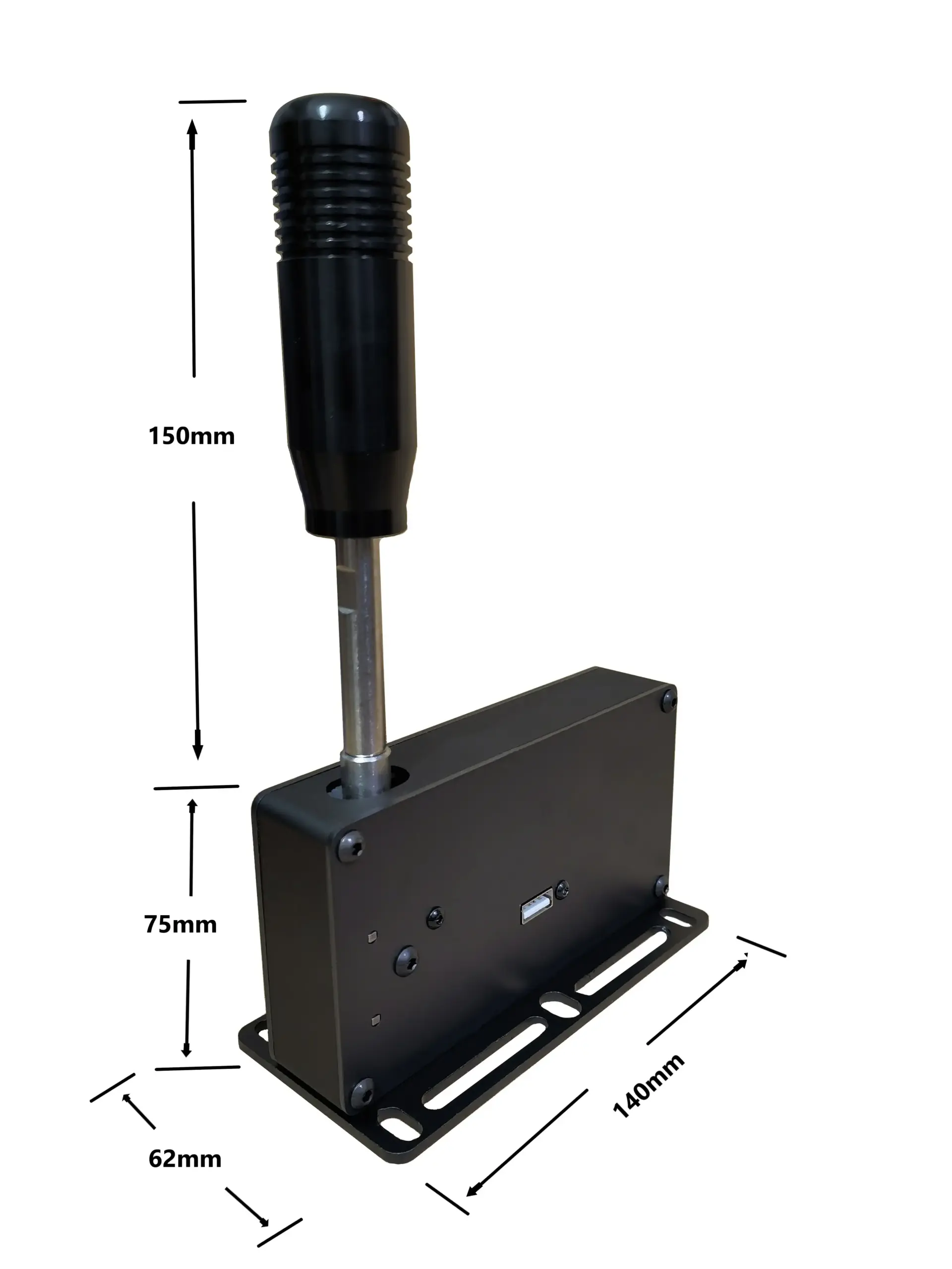 Immerse yourself in the ultimate racing experience with the PC Sequential Shifter Gearshift Sim, compatible with Logitech G27, G29, G920, G25, and Thrustmaster T300RS/GT T500. This robust shifter features a black cylindrical grip for superior control, connected by a polished silver rod to a durable matte black casing. With a plug-and-play USB connection for Windows systems (10/7/XP), it offers two gear positions and operates with a micro switch sensor at a shifting intensity of approx. 3 kg. The 140 cm external cable and 6 mm mountable base enhance versatility in your setup, while the M8 threaded gear head allows for easy customization.
