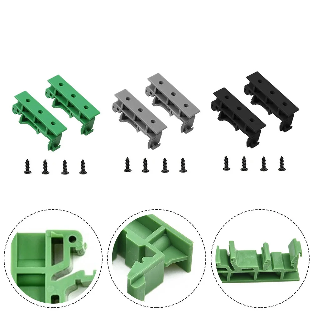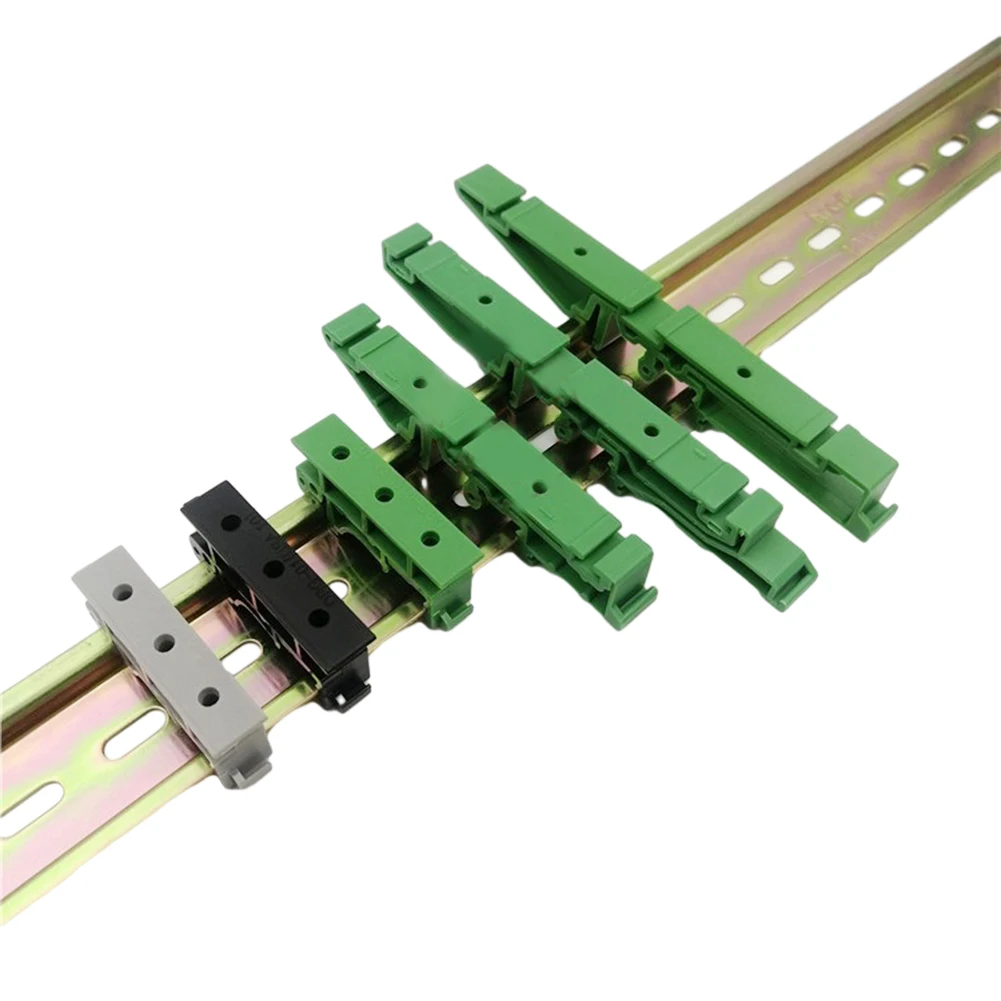 Experience seamless circuit board installation with this set of five durable PCB DIN C45 rail mount adapters. Designed for industrial and electronic applications, these brackets securely hold circuit boards or switches onto 35mm DIN rails. Their sleek, rectangular shape with elongated profiles measures approximately 4.3 cm long, 1 cm wide, and 1.8 cm high, making them ideal for tight spaces. Crafted from high-quality plastic, each bracket features multiple holes and cutouts, ensuring a firm and stable attachment. Available in vibrant green, classic black, and neutral grey, these mounts add an organized aesthetic to your setup. Easy to install and remove, they come with four screws per set for a reliable fastening solution. With a consistent hole pitch of 2.5 cm, these adapters guarantee compatibility and precision for your projects.