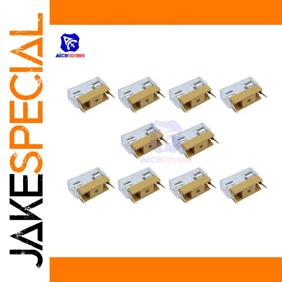 This set of ten PCB fuse holders is designed to meet your electrical and electronic needs with precision and durability. Crafted from transparent plastic with beige metal covers, each holder allows easy visibility of internal components while providing a sleek, industrial look. They feature two sturdy contact pins for easy installation on printed circuit boards, supporting a rated voltage of 250V AC and a rated current of 6A. Each holder measures approximately 26mm in length, 10mm in width, and 21mm in height, weighing just 14 grams each — perfect for compact or complex circuit designs. Built to withstand heat and operate efficiently within a temperature range of -20°C to 85°C, these fuse holders ensure safety, reliability, and longevity.