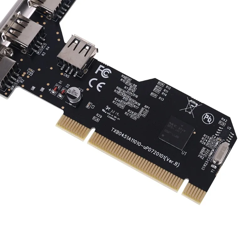 Enhance your desktop PC with this PCI to USB extension card featuring five ports—four USB 2.0 ports and one internal USB-A pin port—designed for seamless connectivity. Powered by a Japanese NEC 720101F1 BGA chipset, it delivers stable performance with ultra-low heat generation, supporting PCIe 32-bit bus at 33MHz and PCI standard version 2.2. Experience data transfer speeds up to 480 Mbps at high speed and connect up to 127 USB devices simultaneously. Compatible with Windows 98SE, Me, 2000, XP, NT 4.0, XP 64-bit, Vista, Linux, and Mac, this sleek, black, industrial-style card is perfect for expanding your system’s USB capabilities with reliability and efficiency.