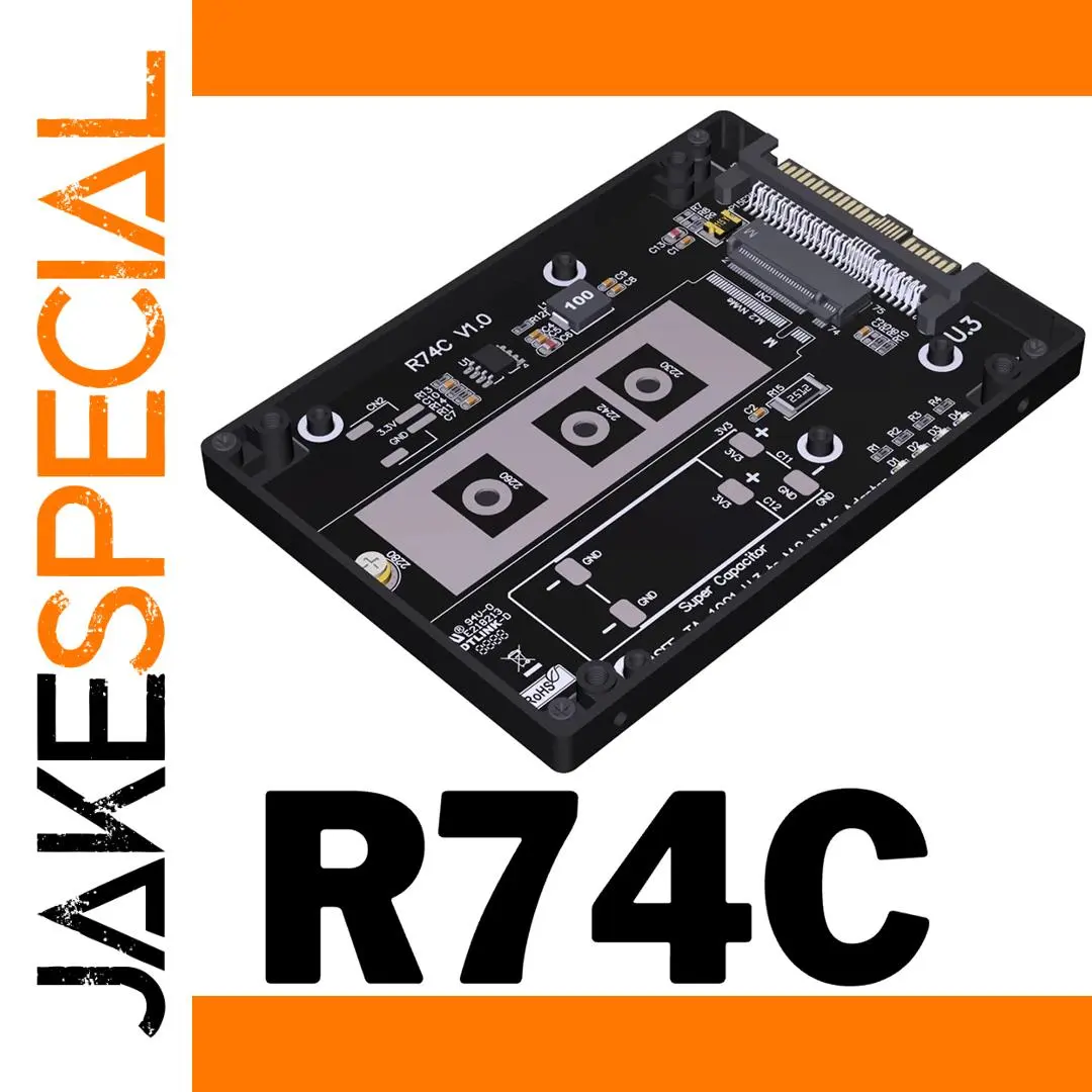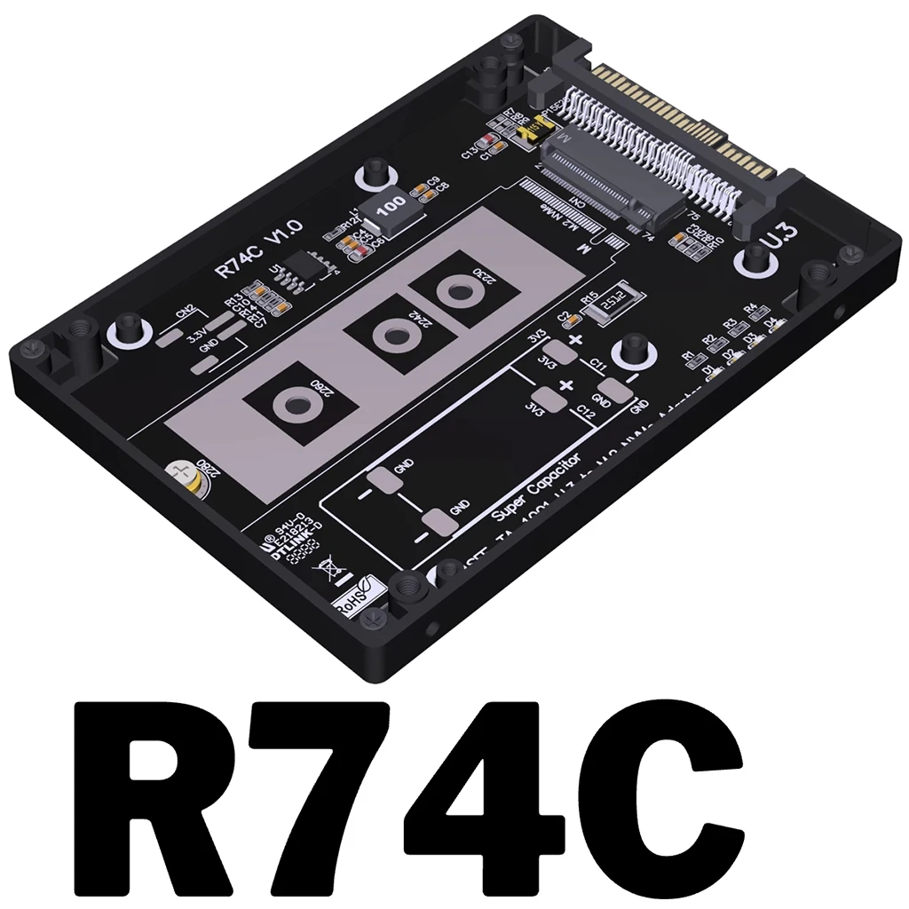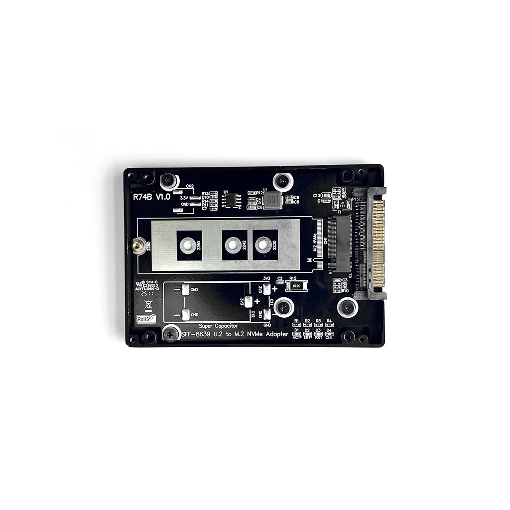 Experience high-performance storage with this sleek, black PCIe 4.0 M.2 NVMe to U.2 (SFF-8639) and U.3 (SFF-TA-1001) SSD enclosure, crafted from durable CNC-machined aluminum alloy for excellent heat dissipation. Weighing only 59g and measuring 100.3mm in length, 70mm in width, and 7mm in height, it supports PCIe x4 bandwidth up to 64Gbps and PCIe 5.0 x4 up to 128Gbps (not supporting SATA). Equipped with a high-current DC-DC module and protective circuits, it ensures stable operation from -40°C to 80°C. The enclosure features a Foxconn PCIe Gen5 connector with 30μ gold plating and supports high-temperature, oxidation-resistant PCB materials, making it a reliable, high-performance solution for connecting NVMe SSDs via U.2 or U.3 protocols.