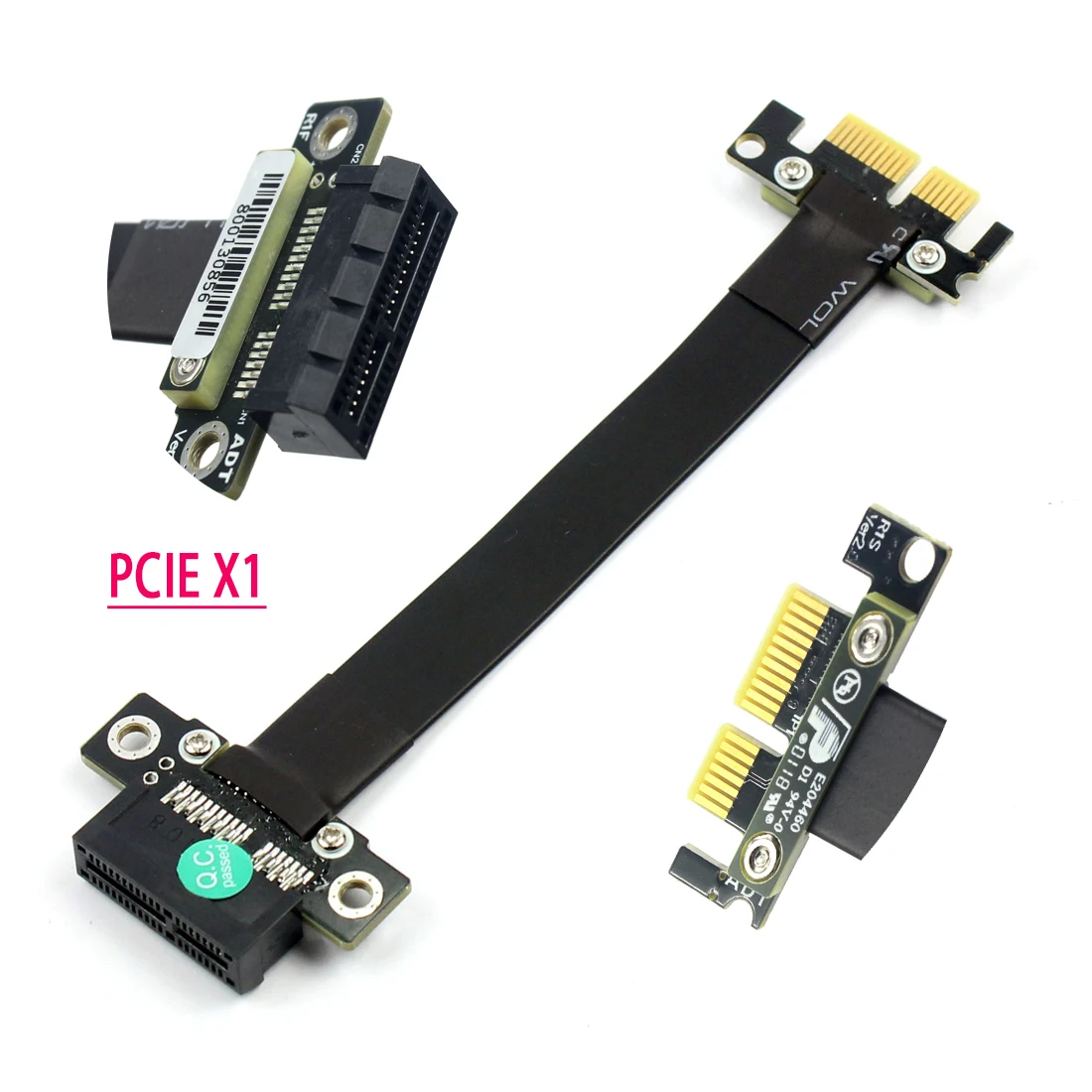 Experience seamless connection and high-performance data transfer with this R11SF PCIe riser card, designed for professional-grade graphics and data cards. Its minimalist black ribbon cable features a flexible, flat design, blending durability with modern aesthetics. Crafted with high-quality black plastic connectors that have a smooth matte finish and gold-plated contacts, it offers both elegance and reliability. The cable's slim profile ensures unobtrusive installation, perfect for optimizing space in high-end mining rigs or professional workstations. With customizable lengths ranging from 5cm to 50cm, this riser adapts effortlessly to your setup needs. Its robust EMI shielding and stable operation make it ideal for demanding applications, providing a sleek, durable, and versatile extension solution for PCIe connections.