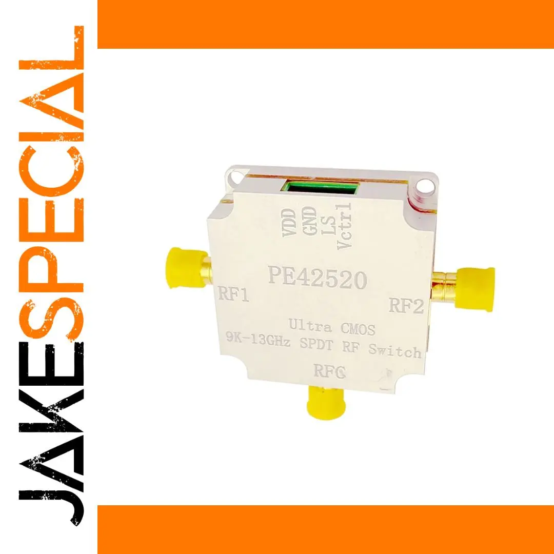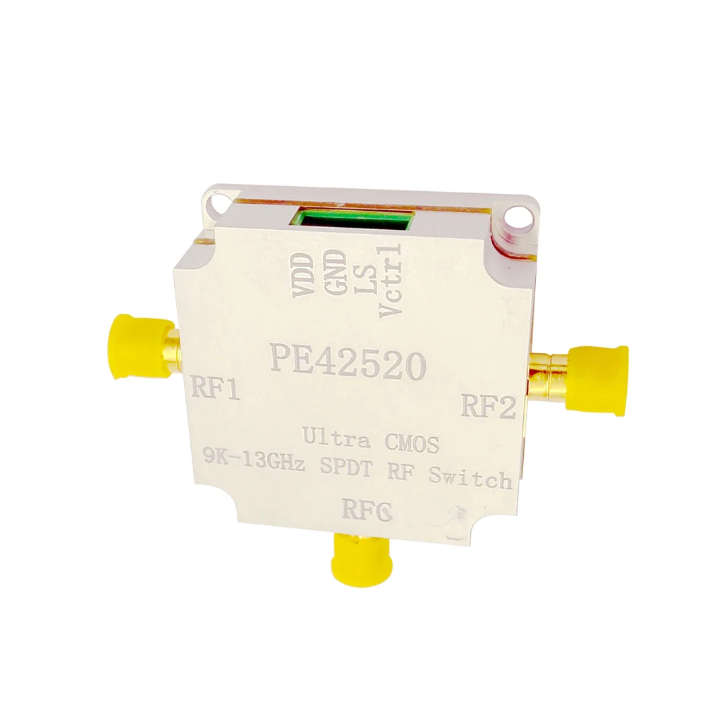 Experience precise microwave switching with the PE42520 13 GHz RF SPDT module, designed for X-band applications. Measuring 35 x 35 mm, it features a robust aluminum alloy shielded enclosure with a split top and bottom design, ensuring minimal interference. Equipped with a gold-plated SMA female RF connector, it offers reliable, high-quality connections. Operating at 5V with a 10mA current, it supports a maximum input power of 26 dBm, making it ideal for high-performance microwave systems. Its non-reflective, professional construction emphasizes durability and efficiency, perfect for advanced RF switching tasks requiring clean signals, excellent isolation, and low loss.