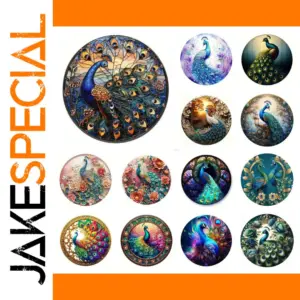 - Features diverse artistic interpretations of peacock motifs, including stained-glass, folk-art, and fantasy styles, with vibrant, detailed color schemes.