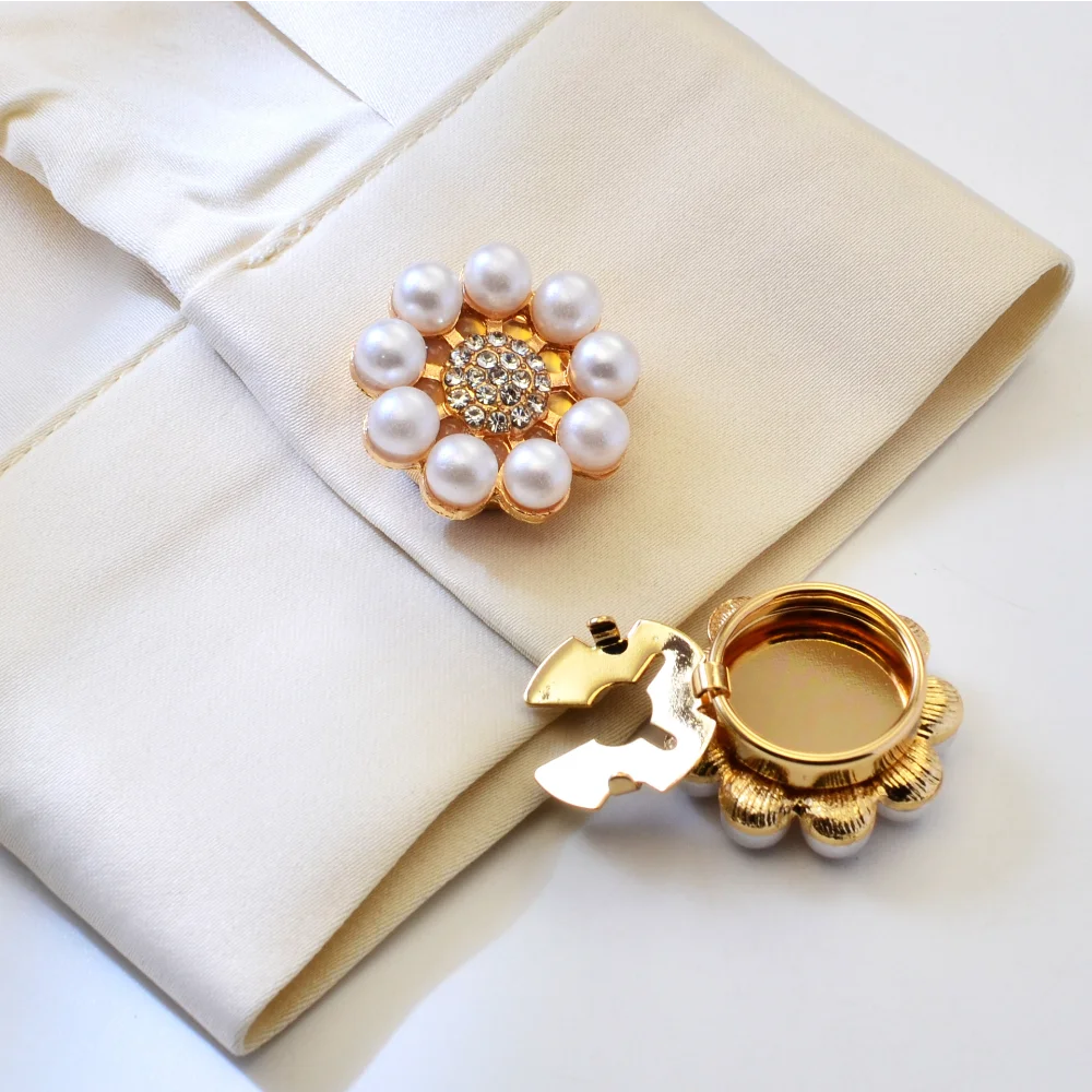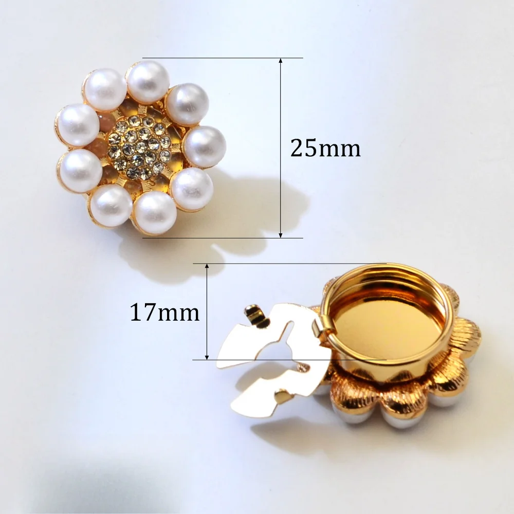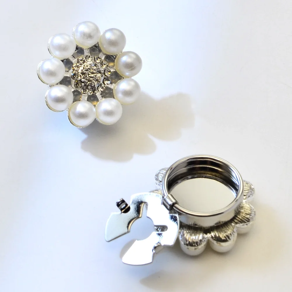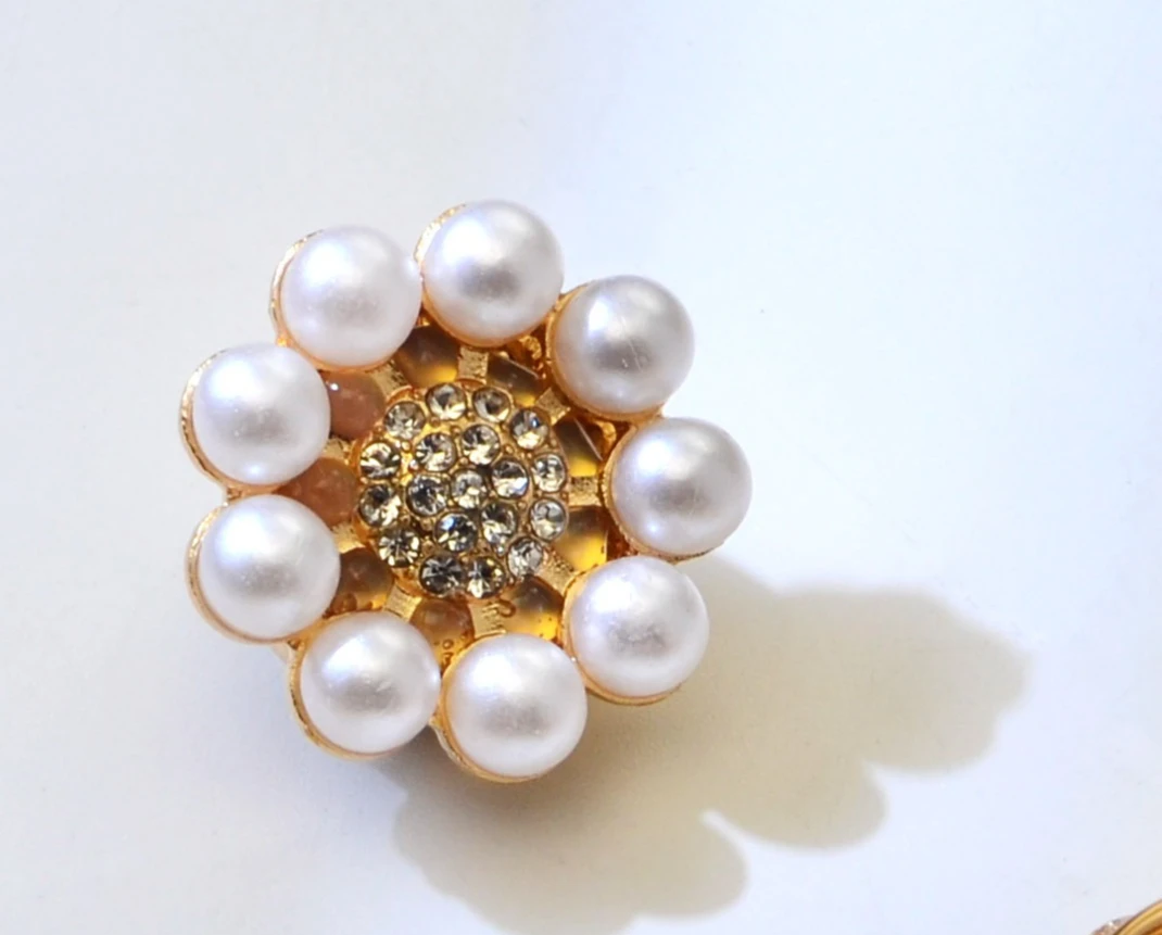 - Designed in a charming flower shape, featuring a cluster of lustrous white pearls around a sparkling rhinestone center for added elegance.