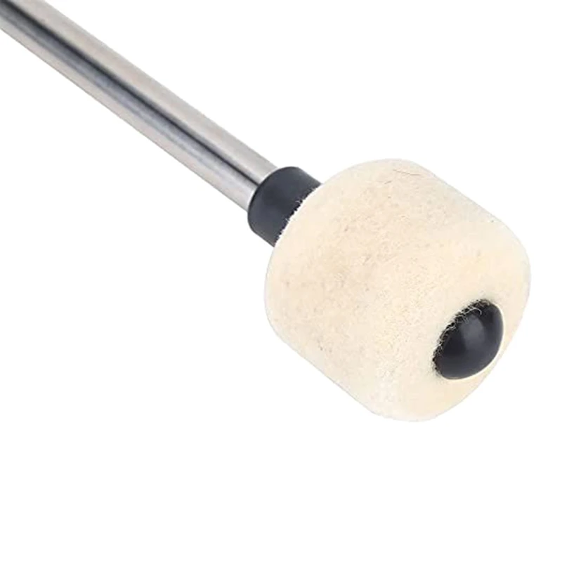 Experience professional-quality sound with this set of two drum mallets featuring 32 cm stainless steel handles with textured rubber grips for maximum comfort and control. Each mallet is topped with a soft, dense wool felt head measuring approximately 5 cm wide and 4 cm high, designed for clear, muffled percussion sounds and lasting durability. The durable braided lanyards ensure secure handling and easy portability, making these mallets ideal for percussionists seeking reliability and excellent sound production. With a sleek combination of stainless steel, plush felt, and ergonomic design, this set offers both aesthetic appeal and practical functionality for demanding performance and practice sessions.