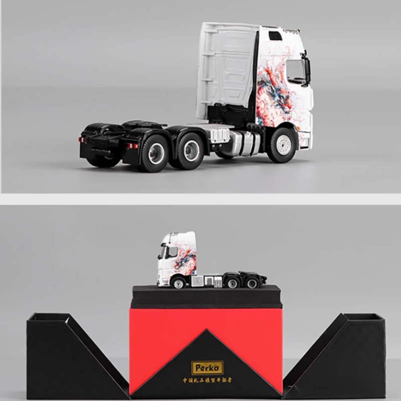 Imagine adding a touch of realism to your collection with this meticulously crafted Perka model transport truck. Measuring 1:64, it boasts an alloy metal construction that offers durability and an authentic weight. Its modern design features a sleek, all-white cab highlighted by vibrant red and blue abstract patterns, alongside a detailed blue-tinged artwork variant and a minimalist classic version. The detailed front grille, side mirrors, and lifelike wheels with silver rims enhance its realistic appearance. Perfect for adult collectors, this truck captures the essence of modern transport vehicles. Its scale and precise detailing make it an impressive display piece, evoking the operational feel of a real transport truck ready for action.